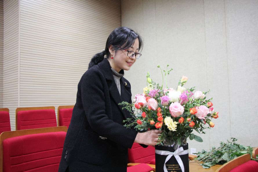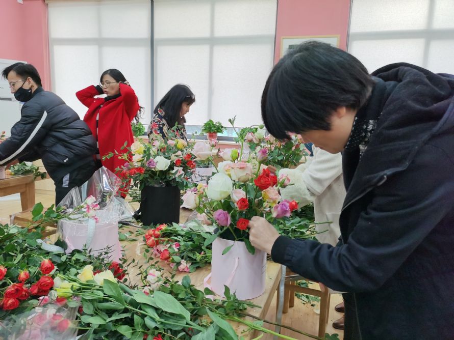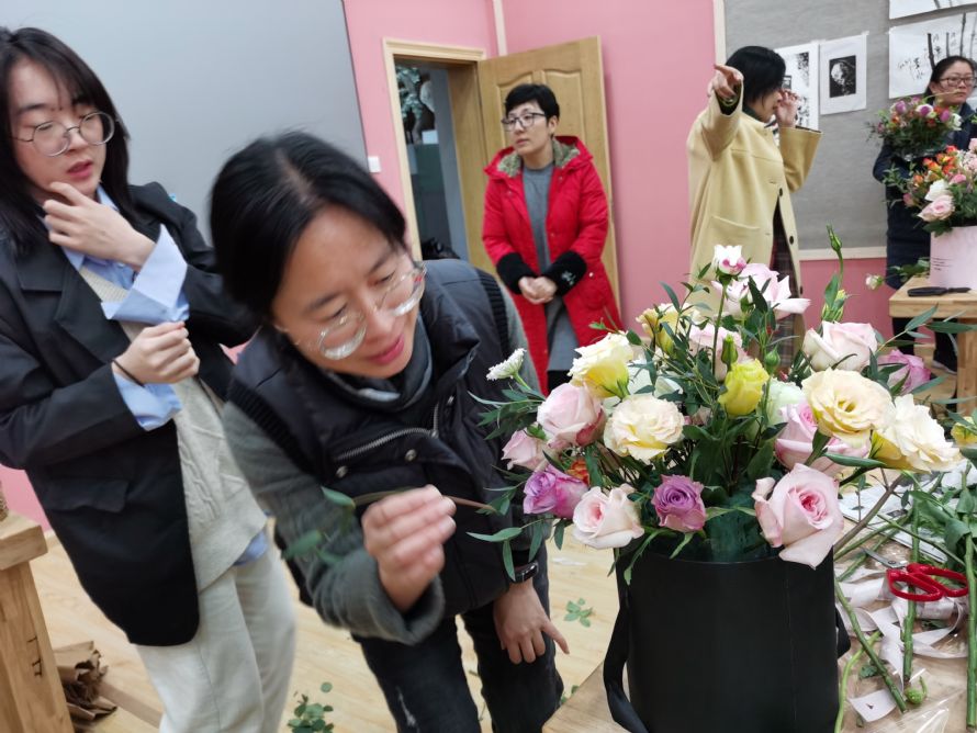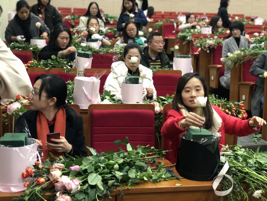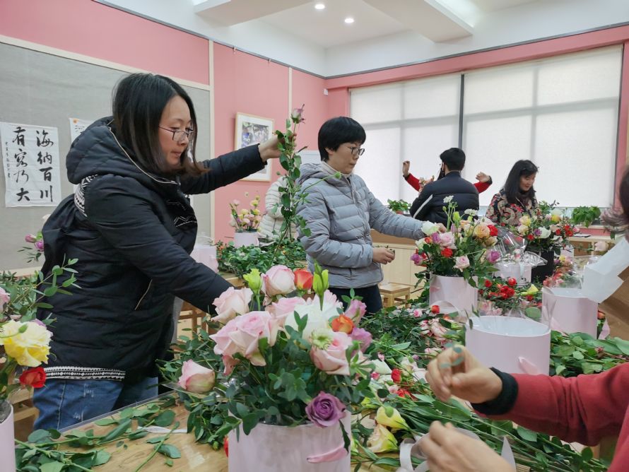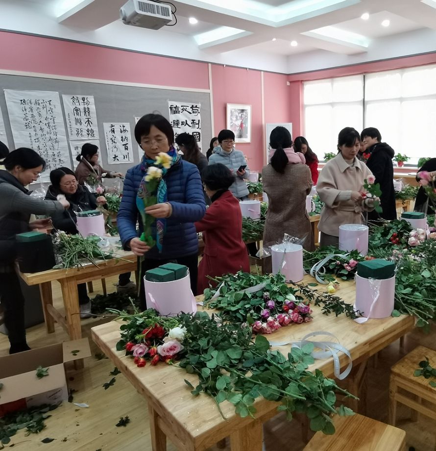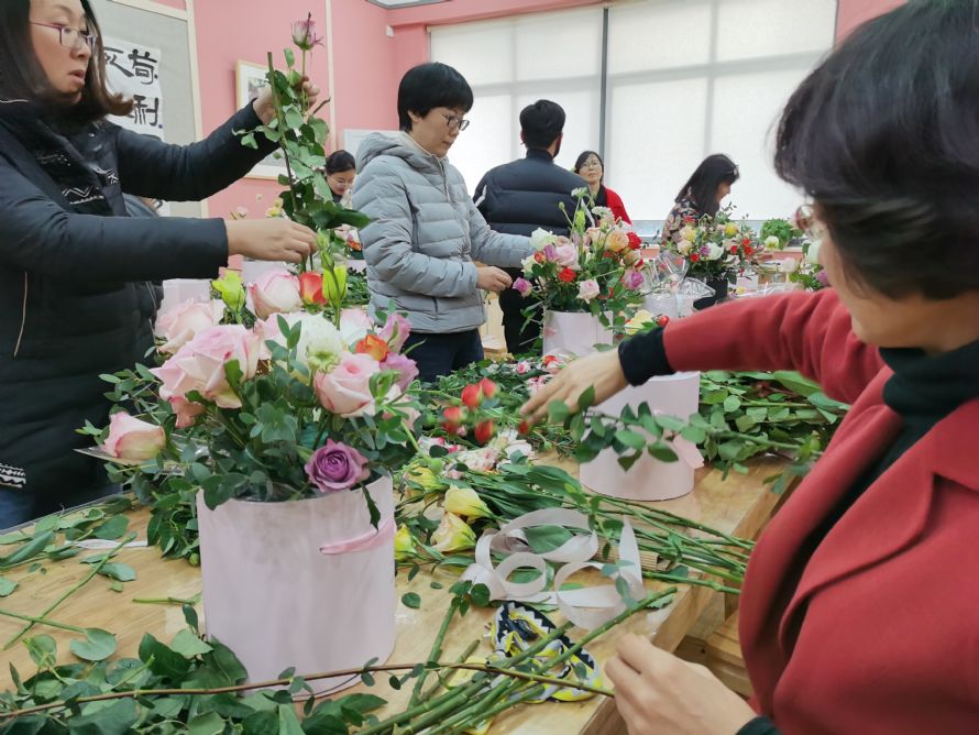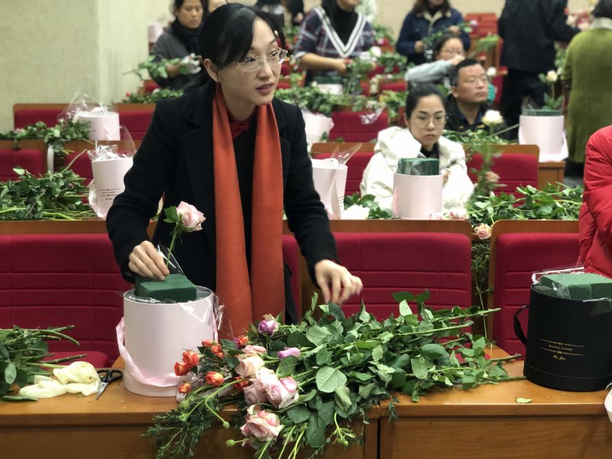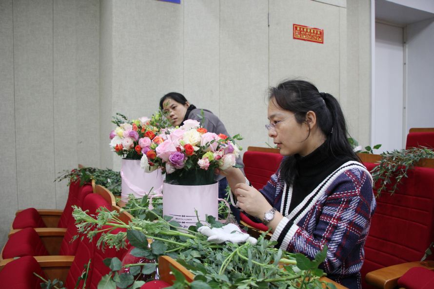爱花之人于123日欢聚白杨体艺馆美术教室、124日下午欢聚东部学术报告厅。走入会场,迎面呼吸的是花的芳香,看到的是稍显杂乱的花材。不必着急!我们有功力深厚的花艺师加持,还有我们神奇的创意和勤劳的双手。