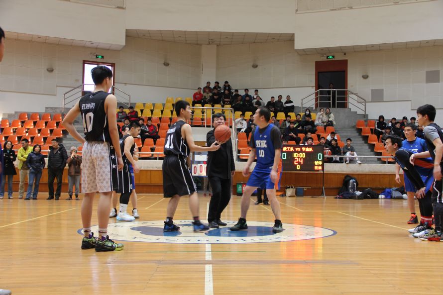 下半场由白杨校区的学生迎战教师队,开场后教师队突然发力,范少迎老师、陈强老师相继命中跳投,而他们极具压迫性的区域联防更是逼迫着学生球员失误连连,就在这时,学生队的张哲豪站了出来,他迎着防守接连命中三分帮助白杨稳住局势,比赛渐趋白热化。双方队员都已经几乎竭尽全力。末节后半段,学生球员体能不足,老师们打出一波9:0小高潮,最终教工队以64:52战胜了学生联队。