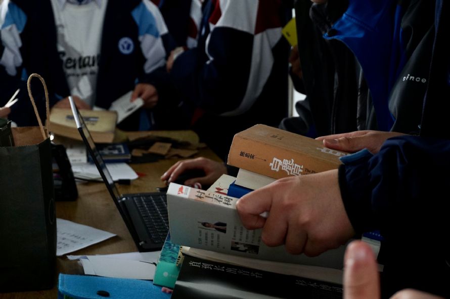虽正值阴雨绵绵之际,但心怀对文学的热爱,不少同学早早便来到了教学楼五楼的活动举办地,用换书券换得了其他同学的优秀书目,开启了彼此间精神的交流。随着时间流逝,越来越多的同学加入到这场盛宴中,与此同时,也有一大批同学涌入了杂志售卖的场地,开始选购称心如意的实惠书目;有的则进入到旧书处理场地,找寻学长学姐的智慧结晶。在如此难能可贵的机会下,对一本本好书爱不释手的同学们争相踊跃购买,各场地的“收银员们”更是忙得不可开交。随着下午课程将至,活动才在大家的欢声笑语中圆满结束。