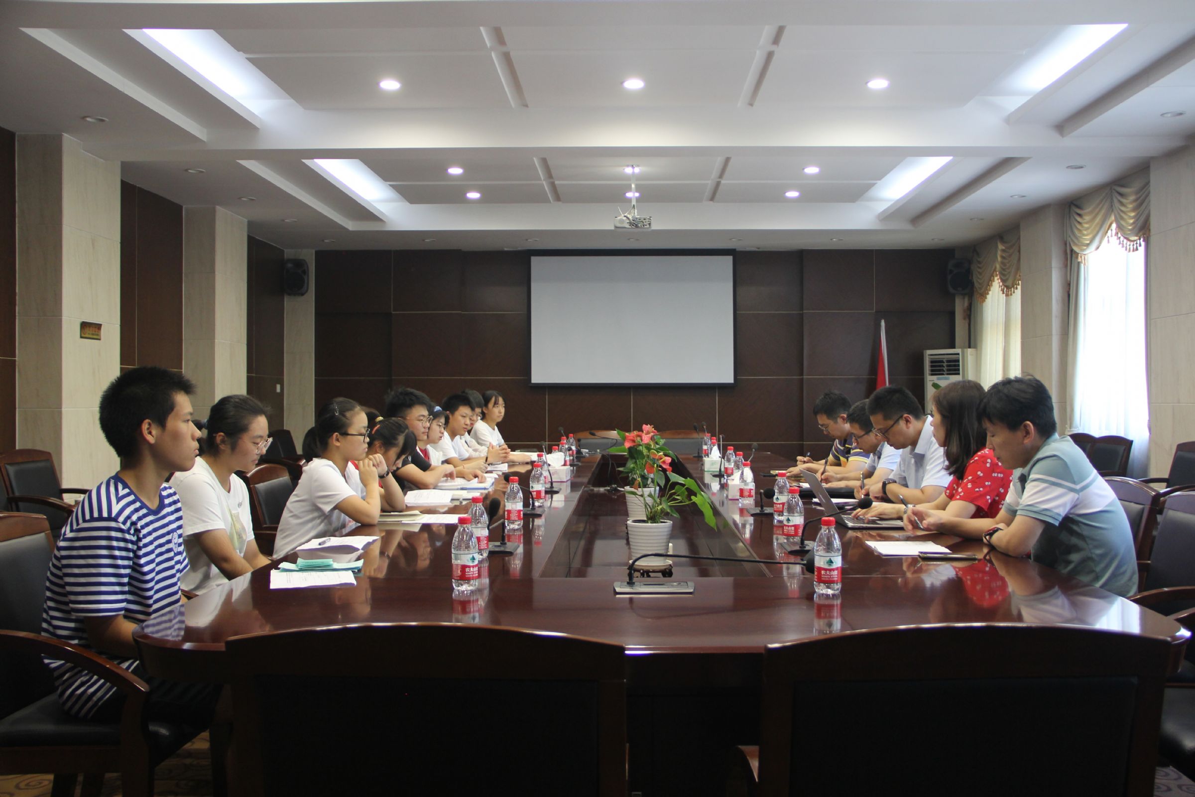 2021年9月23日,白杨校区本学期第一次“校长接待日”座谈会在行政楼230会议室举行。王贤明校长、孙立副校长、董敏达副书记、学生处张潆尹副主任和后勤装备处陈谦主任参加本次座谈会,与高一年级各班学生代表进行了面对面的交流。