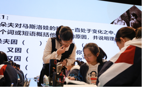济南山大实验学校沈云杰老师《共赴一场跨越时空的心灵之约——〈复活(节选)〉心理描写探微》的课堂教学以“排演话剧‘探监’片段”为情境,围绕“贴近文本,揣摩心理活动”“研读剧本,补白心理活动”“整合活动,梳理心理活动”三个学习任务展开。通过研读文本、比较阅读等学习方式,学生逐步领悟托翁展示心灵奥秘的造诣。