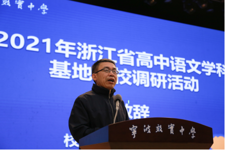 活动伊始,宁波效实中学党委书记、校长王贤明校长致开幕辞。王校长指出承办此次活动为效实中学语文学科组提供了展示机会,也为老师们提供了向同行学习的机会。此次学术活动契合效实中学秉承的“建设被社会尊重的走在时代前列的学术性高中”的办学愿景与追求,有利于推动效实中学语文教育质量的提高和语文教师专业能力的提升。