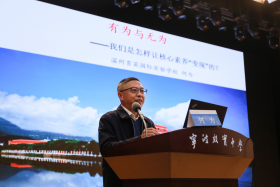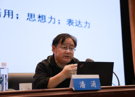 21日下午,浙江师范大学教授、博导潘涌教授围绕“语用”“积极语用”“思想力”“表达力”四个关键词做了题为《积极语用:语文教学的应然之道》的讲座。