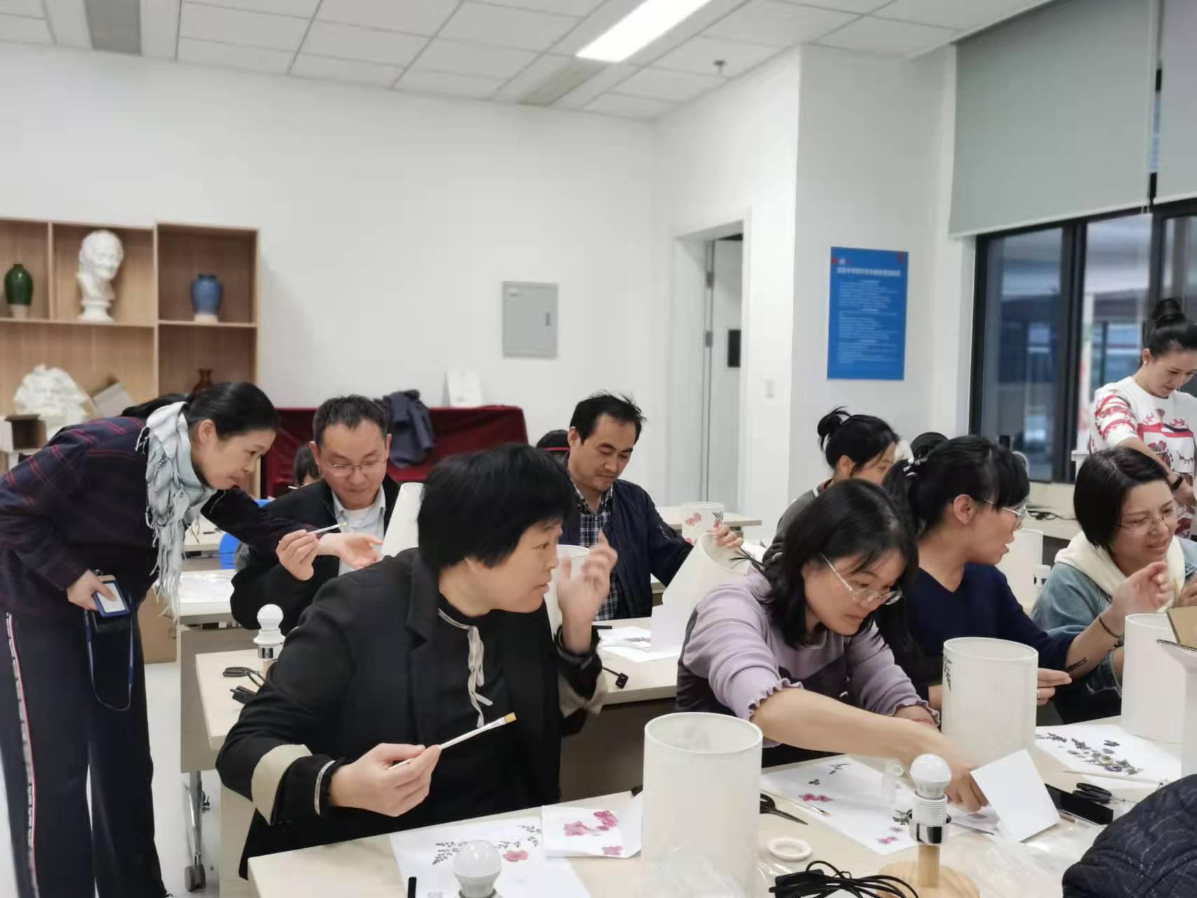 当台灯与压花相遇会碰撞出怎样的火花?当日,活动现场气氛温馨,我们邀请的赵玉芬老师及她的团队讲解了压花台灯的设计和制作步骤,带领参与活动的职工进入一个全新的美学世界。由于没有特定的设计方式,一切都根据花材的形状、颜色、大小,花可多可少,造型可丰满可简单,只要凭借制作者的创意和随心所欲的发挥,因此,参与活动的教职工们在较为轻松自在的氛围中悠闲又有点小紧张的忙碌着。没有笔的创作,花儿即为笔。绣球花、樱花、蕾丝花等或形式而独立,或与绿叶相得益彰。别看只是选选黏黏,好像位置就是不太合适?怎么办,揭走再重来,只需要耐心足以定格一花一草的美丽。实在感觉不协调,别怕,还有现场专家在旁细致指导。美化完毕的灯筒与灯座一旦组装,一盏盏与众不同的压花台灯也相继成形。