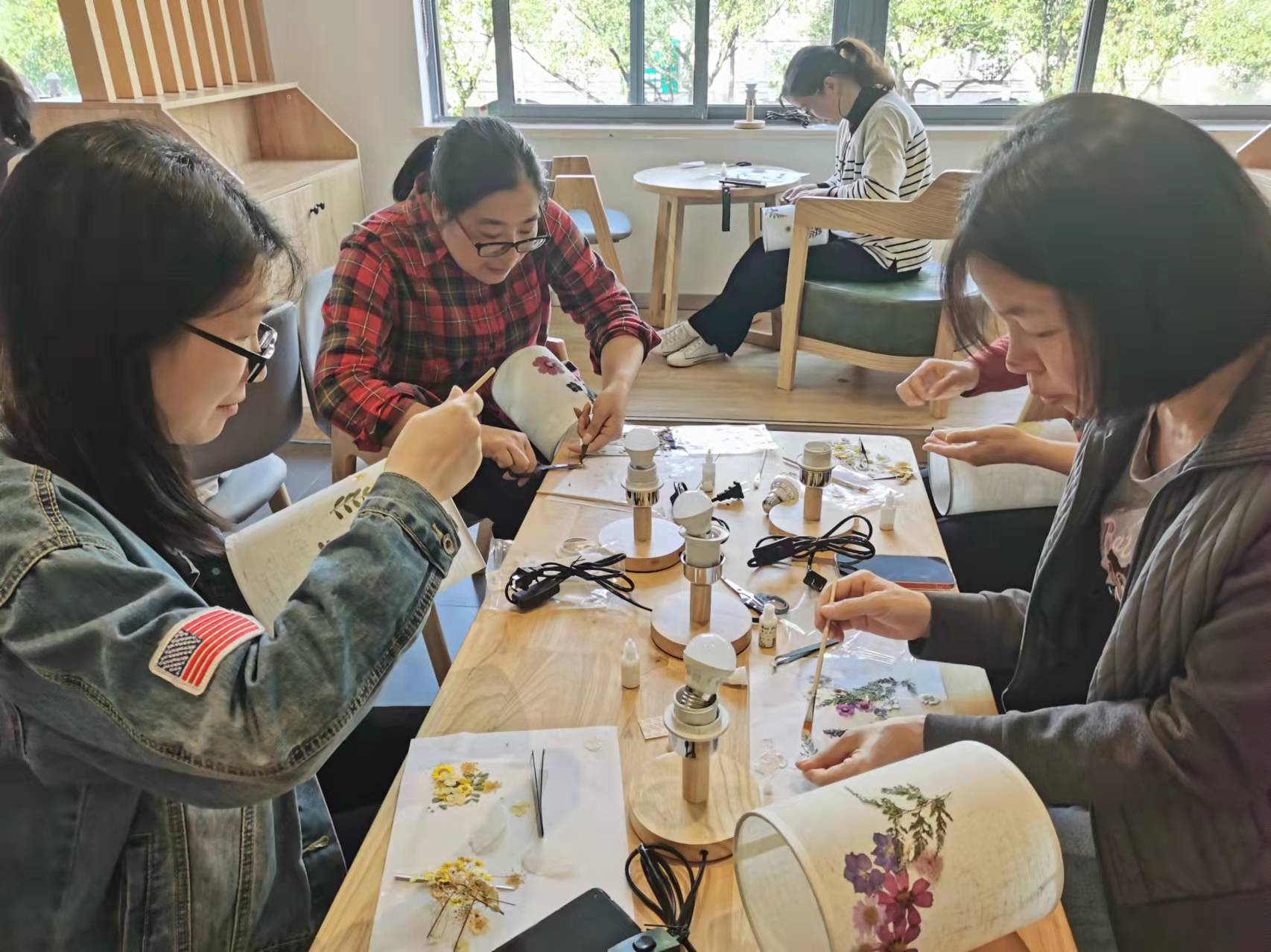 挥别灿烂活泼的九月,迎来静美微凉的十月。这样的十月,暖心是对自己最佳的馈赠。给自己一杯热茶、一趟秋赏,也可在静室聆听花、叶的喃喃细语,手作一盏压花台灯。校妇委会和工会于1027日(周三)在东部校区下沉广场美术教室、1029日(周五)在白杨校区教工阅读空间组织了四场的压花台灯制作活动,用我们勤劳的双手设计、创作一盏盏花灯,融合了花的芳香、人的灵感、秋的暖意、灯的温情。