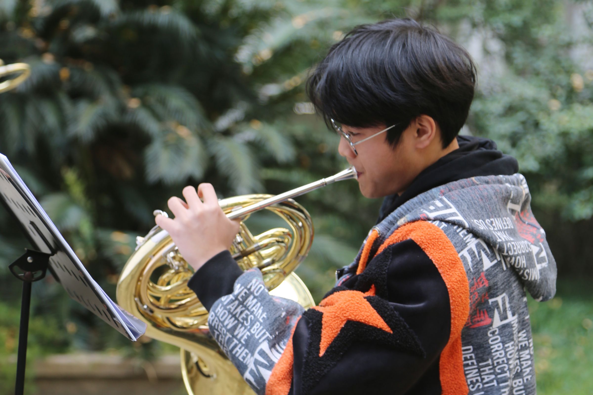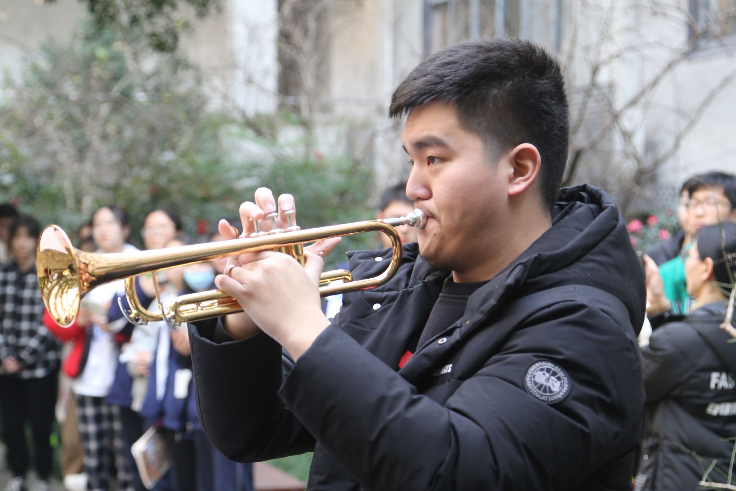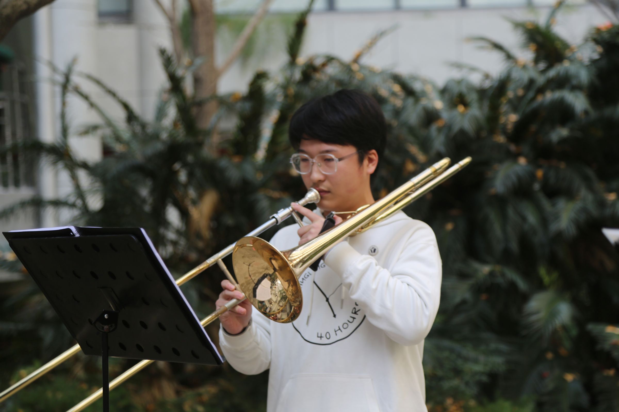 12月22日中午,悠扬婉转的乐声在效实中学白杨校区响起。小号的清脆高亢,圆号的低沉柔和,长号的悠长温暖,低音提琴的浑厚有力,组成了深情而又鼓舞人心的《You Raise Me Up》。