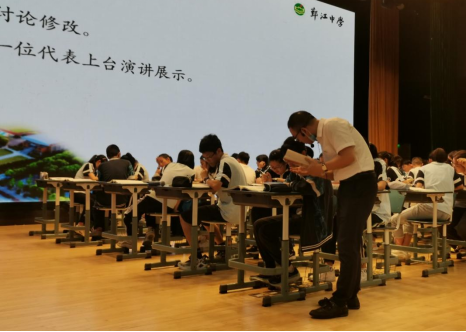 铃声响起,来自鄞江中学的杨传森老师就《如何学写演讲稿》一课进行了深入、透彻的讨论。他引导学生从经典演讲入手,感受演讲中的“理”与“情”,在讨论中精进了学生的习作,在激昂的演讲中结束了充实的一课。