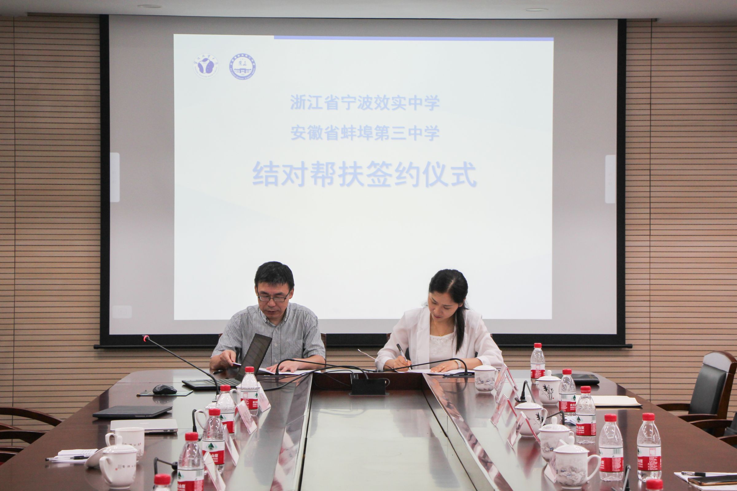 “崇正以求真,效实以储能。”在与会领导的见证下,效实中学校长王贤明与蚌埠三中校长王红燕作为学校代表,共同签署了结对帮扶协议。未来两校将在教科研、优秀学生和创新人才培养等多个方面开展合作。