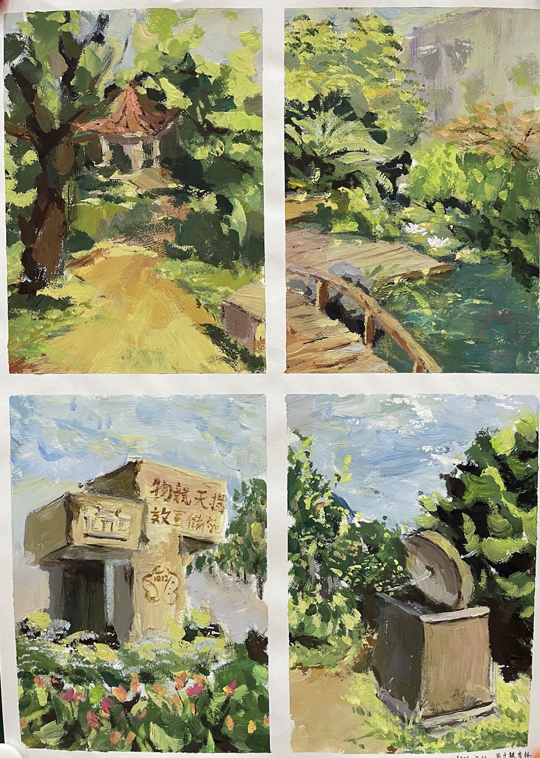完善的教育离不开艺术的存在,完美的人生离不开美的创造。7月放假之初,校美术组组织了暑期集训校园写生活动,新高一、新高二同学积极参与,于白杨校区展开。炎炎烈日之下,同学们不顾酷热,穿梭在效实园银杏林、教学楼内等,踩点、绘画,运用了不同的表达方式,提升了其观察与感悟能力,涌现了很多优秀的作品。在效实110周年来临之际,同学们用自己的画笔为学校献礼,祝福效实越来越好,也期待后续更多作品呈现。