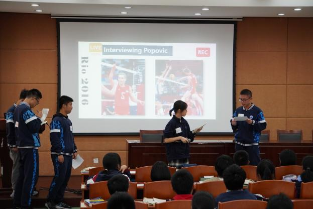 在同一个主题下,王天瑜老师选择了外研社高中英语教材The Return of the Champions作为阅读材料。以单元主题意义的探究与提升为目标,基于真实的生活情景,她设计了整合式的学生活动——奥运会女排决赛赛后采访。本堂课的活动形式新颖,激发了学生的学习兴趣。同时本节课以学生为中心,教师在课前以导学案的方式为学生搭建语言输出的平台并做好引导,学生在理解文本的基础上加以个性化的选择和处理,通过不同的人物角色来抒发他们对于女排精神的认知和感悟。