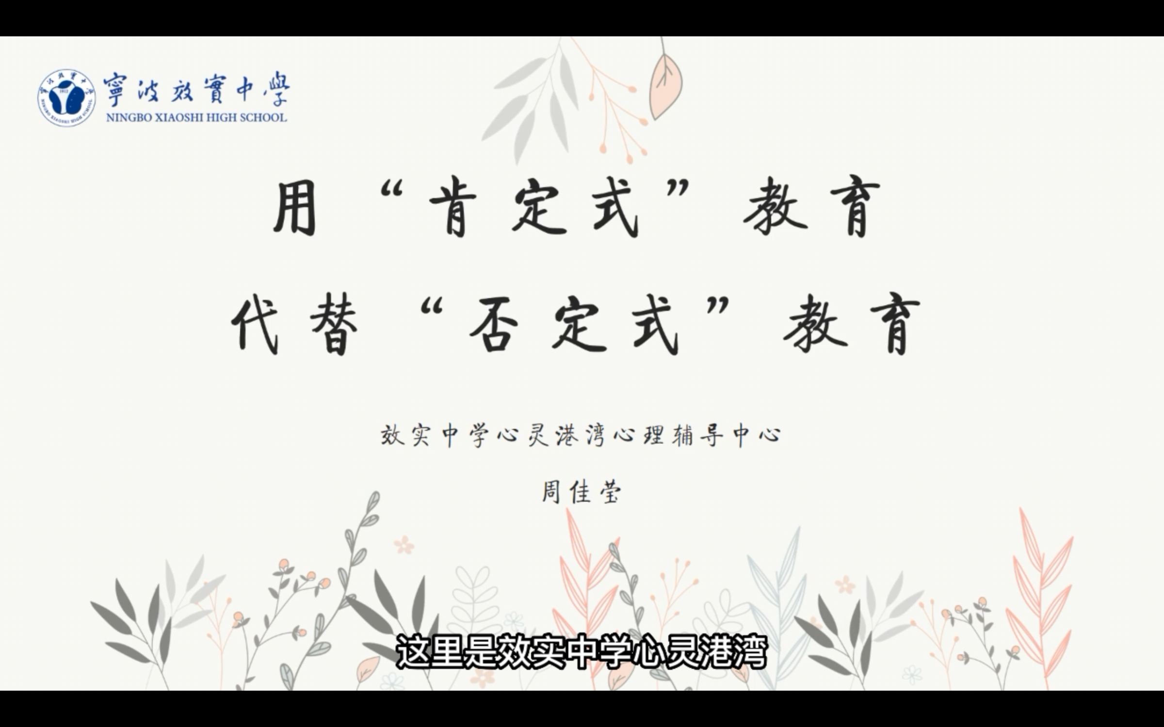 在高二年级家长会上,学校心灵港湾诚意推出了一期家校共育心课堂《用“肯定”式教育代替“否定式”教育》。心课堂从认知神经科学的坚实研究出发,结合能激发共鸣的案例,介绍了在期中考后这个节点,家长如何与孩子开展积极对话,提供了几种能有效促进孩子健康心理和学习内驱的赞美方式,并倡议用放大镜发现孩子的“闪光点”。