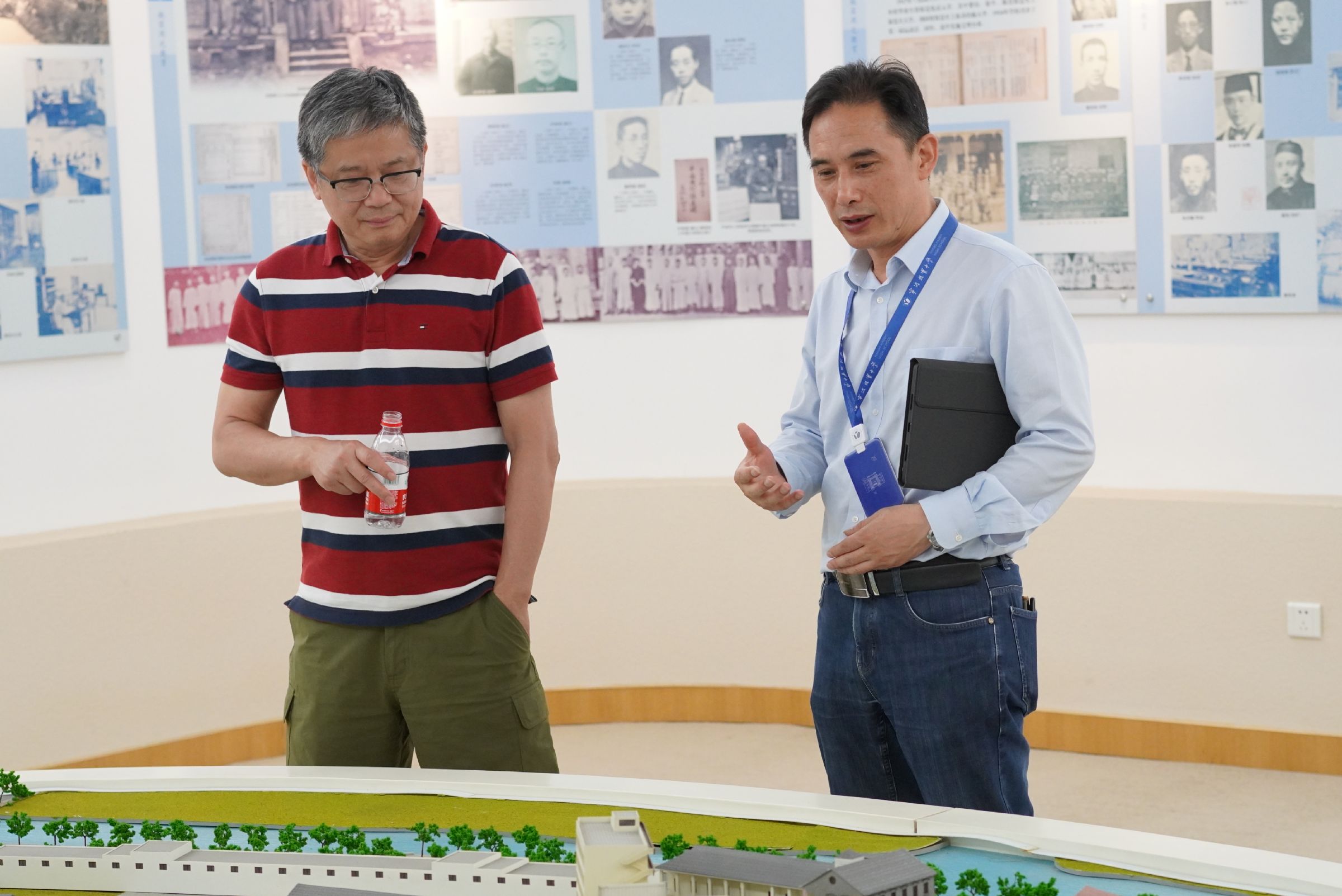 与同学们的小范围交流结束后,张曙丰校友在效实中学副校长、效实中学校友会会长夏炳老师和效实中学校友会秘书处王伟江老师的陪同下,参观了学校的校史室。