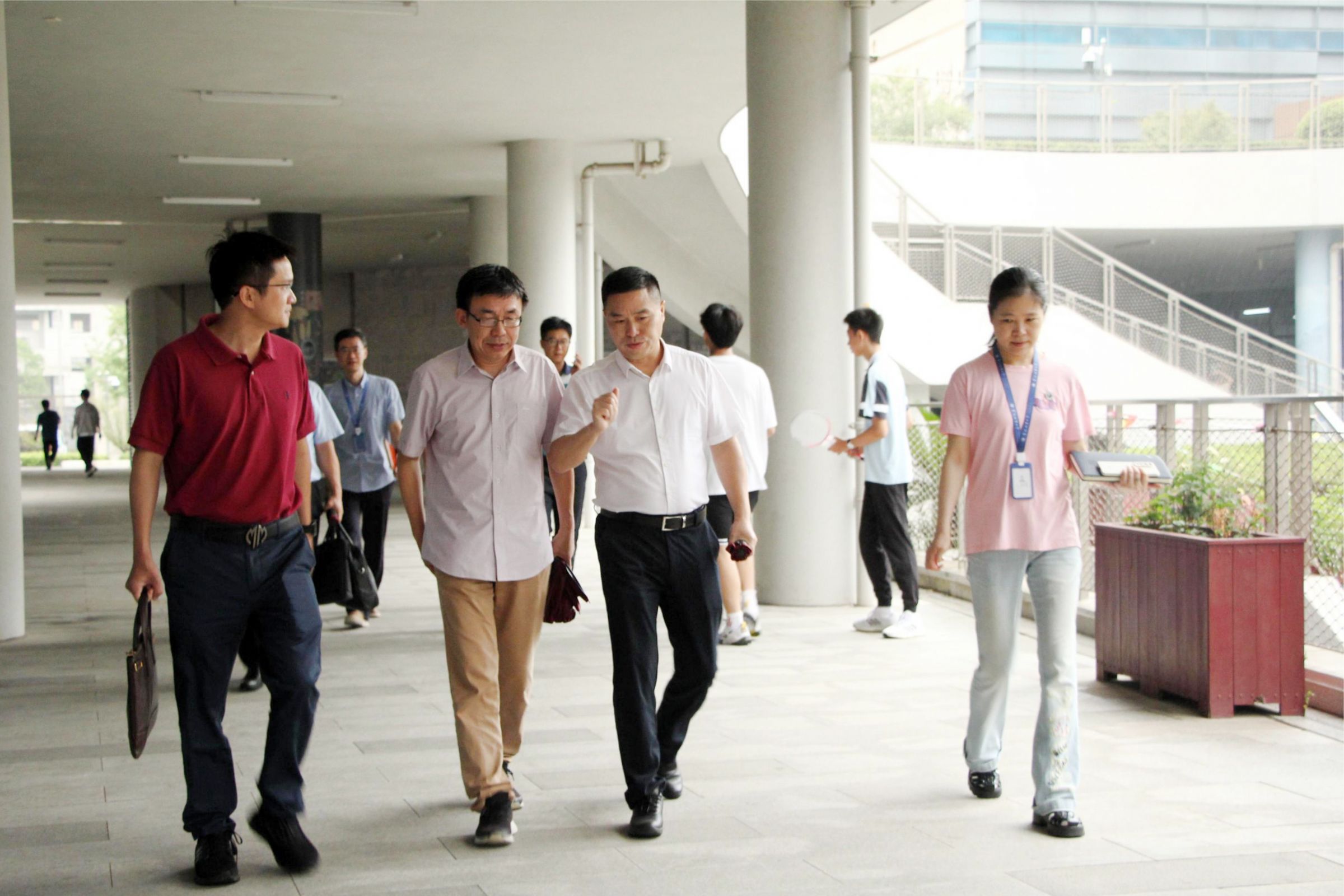 9月14日下午,宁波市教育局党委书记、局长毛才盛,市教育局办公室主任陈欣,市教育局基教处处长张光明来我校东部校区检查秋季开学工作,实地考察校园安全工作。效实中学王贤明书记、张悦校长、黄琪锋副校长,党政办、教务处、学生处负责人全程陪同。