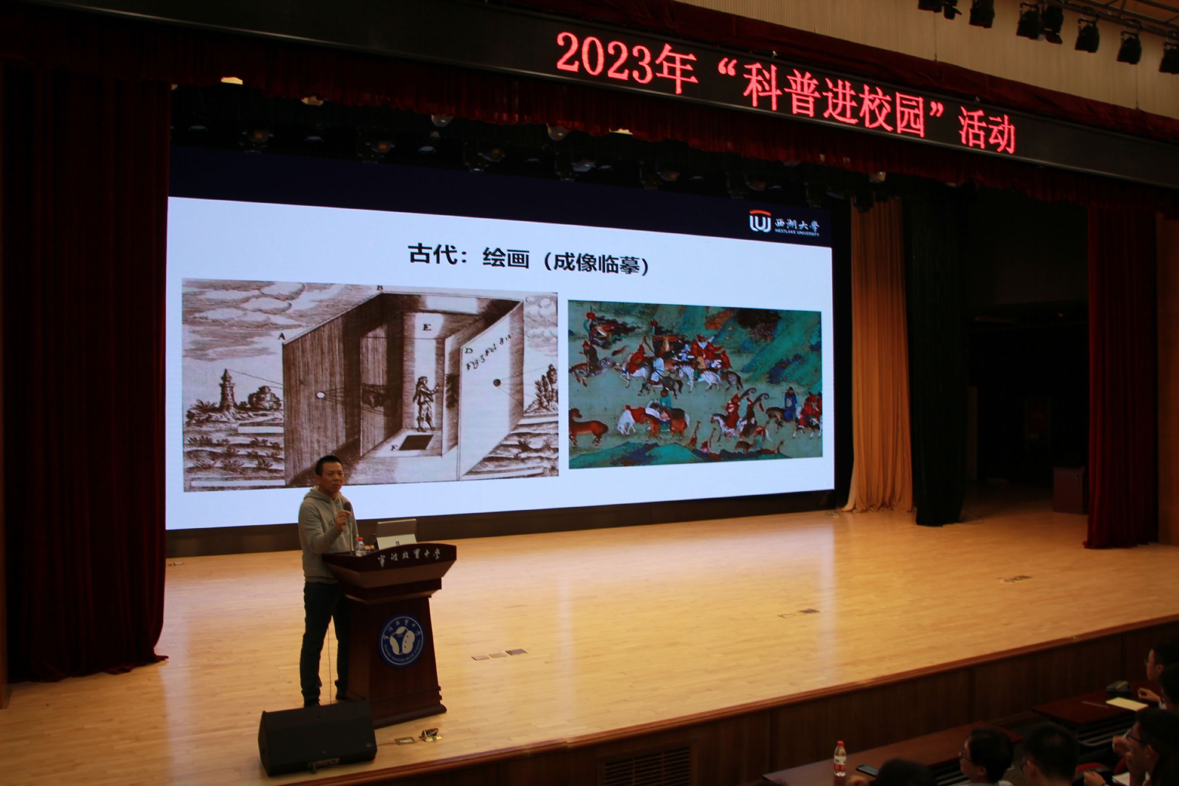 从科学家们在探索光的本质时做的小实验,到人们通过绘画、照相机进行光学成像,以及如今使用的人脸检测与表情识别、语义分割与自动驾驶等机器视觉,再到所见即非得的计算光学成像的多领域应用,还有如今广为热议的ChatGPT内所包含的科学本质……袁教授深入浅出的讲解和贴近生活的真实举例,激发了同学们对计算成像的兴趣,现场掌声阵阵,反响热烈。