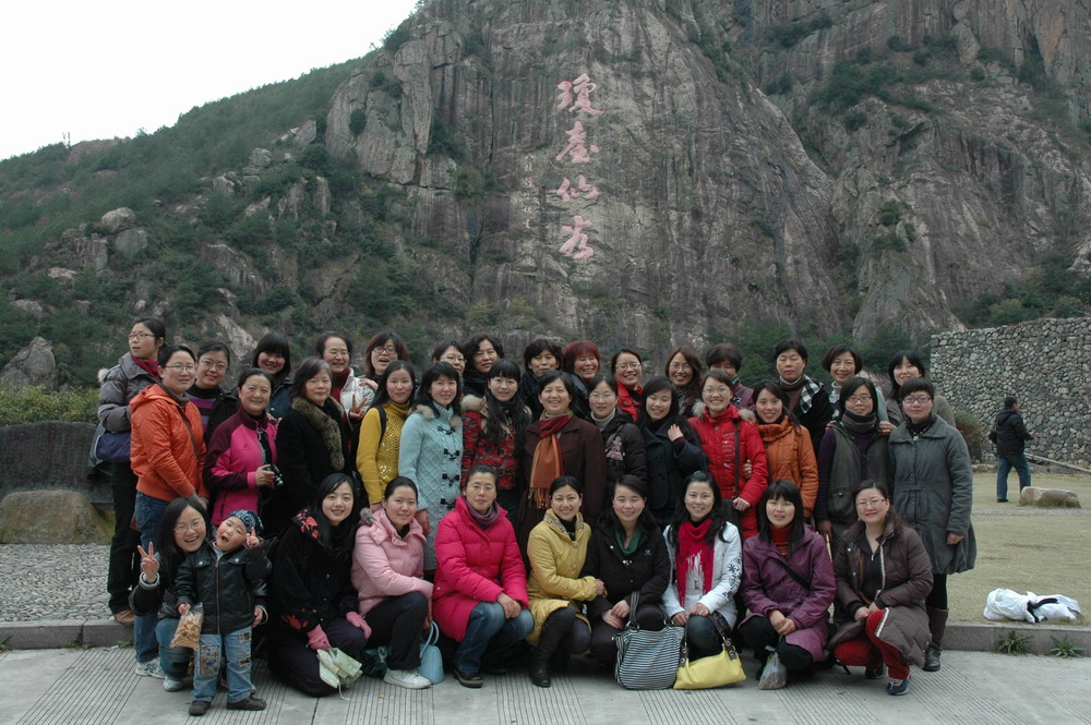 主任周胜敏的带领下,妇女同志们登上了王羲之、徐霞客、康有为、郭沫若等名士硕儒都曾留下深深足迹的天台山。那里山水神秀,俊朗峭壁中幽含八仙湖,飞瀑清泉上流动仙踪神迹,悬空廊上古钱仍在,琼台双阙下,仙人座依然,八百凌空栈道,不只是心跳,更多的是深深折服,天台山以其无穷的魅力吸引着我们。