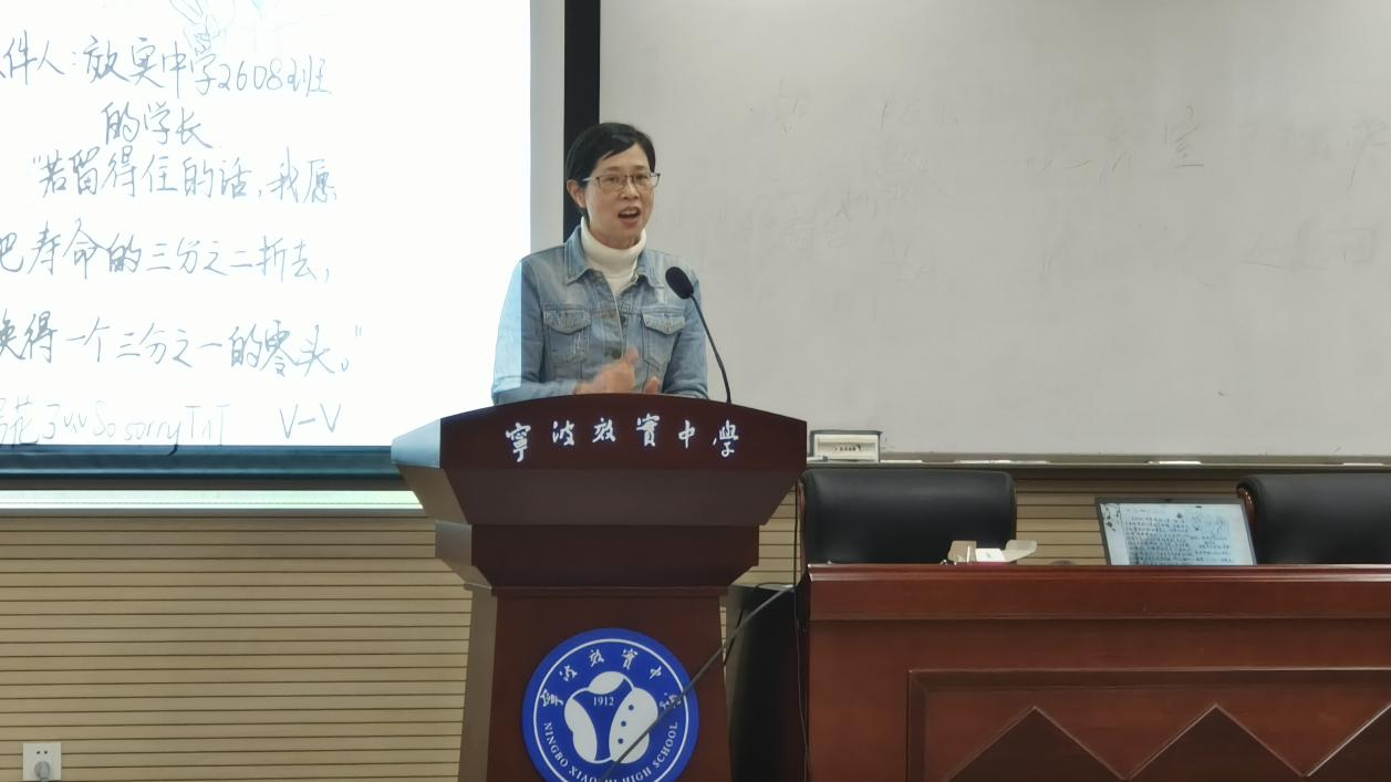 11月28日下午,语文学科课堂展示活动在东部校区教学楼二楼阶梯教室举行。宁波效实中学王钰老师和贵州兴义一中郑怡老师参与执教,执教对象分别为效实中学D2607、D2608班。宁波鄞州中学王红元老师和宁波效实中学蒋文杰老师莅临点评。语文组全体参与听课评课,还有来自二中、李惠利中学、慈湖中学、松阳一中、许昌地区老师等友伴学校的老师。