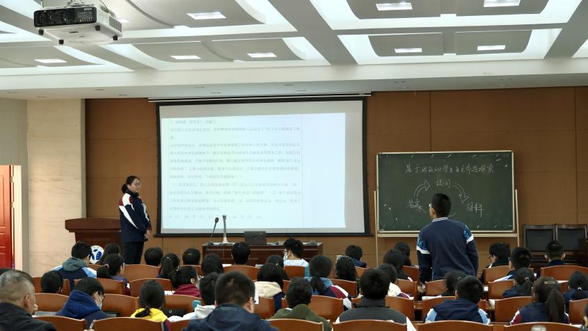 1128日上午,由效实中学的臧世晨老师和来自蚌埠三中的高阳老师分别执教高三复习课《基于时政的学生自主命题探索》和高一新课《贯彻新发展理念》。