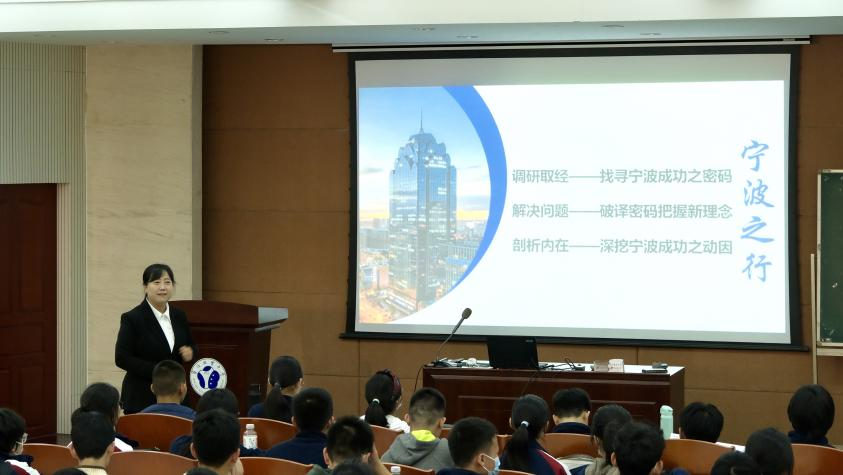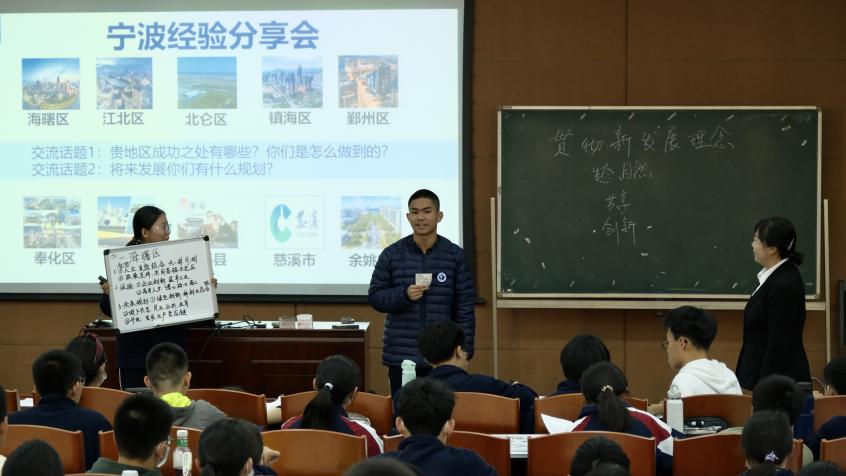 来自蚌埠三中的高老师围绕着“调研取经—找寻宁波成功之密码”、“解决问题—破译密码把握新理念”和“剖析内在—深挖宁波成功之动因”三个议题,充分调动了学生参与课堂的热情,整节课互动性很强,非常热闹。