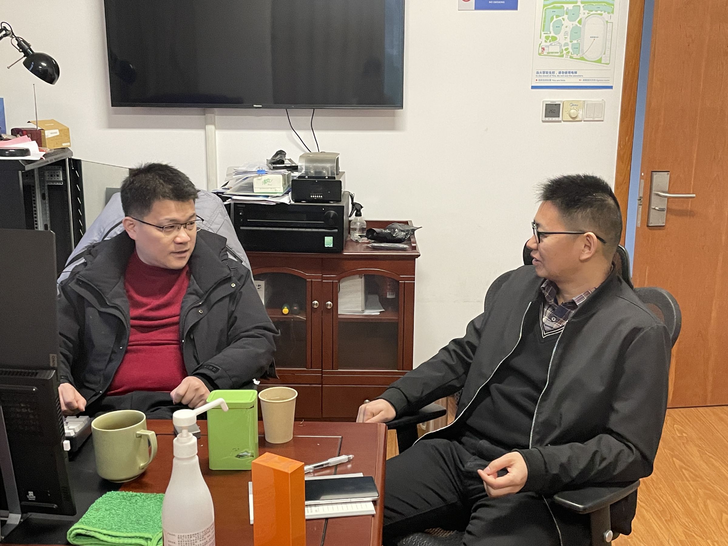 随后,考察团一行来到教学楼,旁听了鲍老师执教的高二(4)班语文课和姚老师执教的高二(8)班数学课,详细了解了我校在新高考模式下的走班制教学情况和学习方式。库车市第二中学信息中心周建华主任来到我校信息中心叶建勇主任办公室,双方就学校信息平台建设进行了交流研讨。