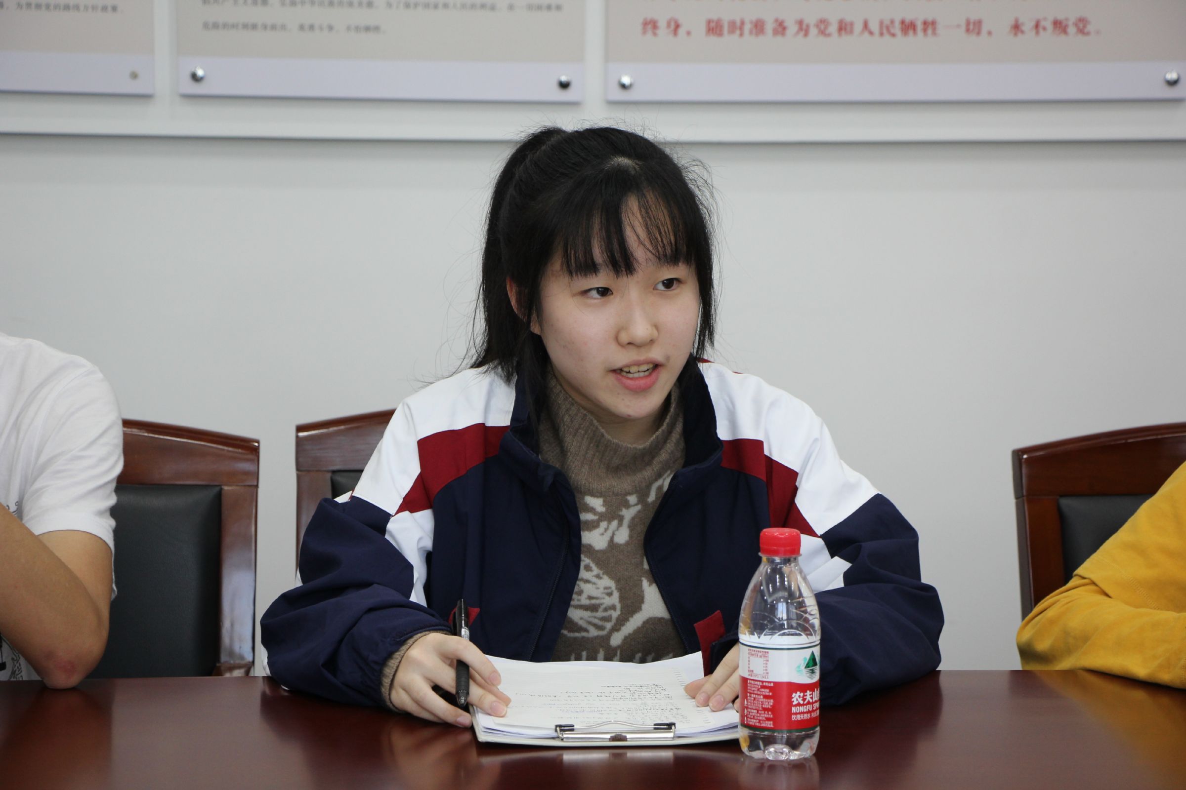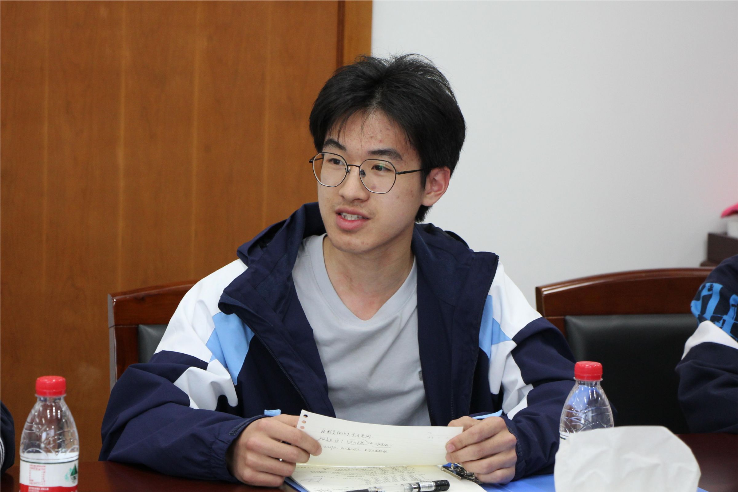 “是否可以延后宿舍熄灯时间?”“图书馆自习时间是否可以增加几个时间段供选择”“是否可以开设写作类的选修课”……高一各班学生代表收集整理了班里同学的诉求,在座谈会上将班里同学对学校工作开展的意见、建议以及学习生活上遇到的问题传达给校方。