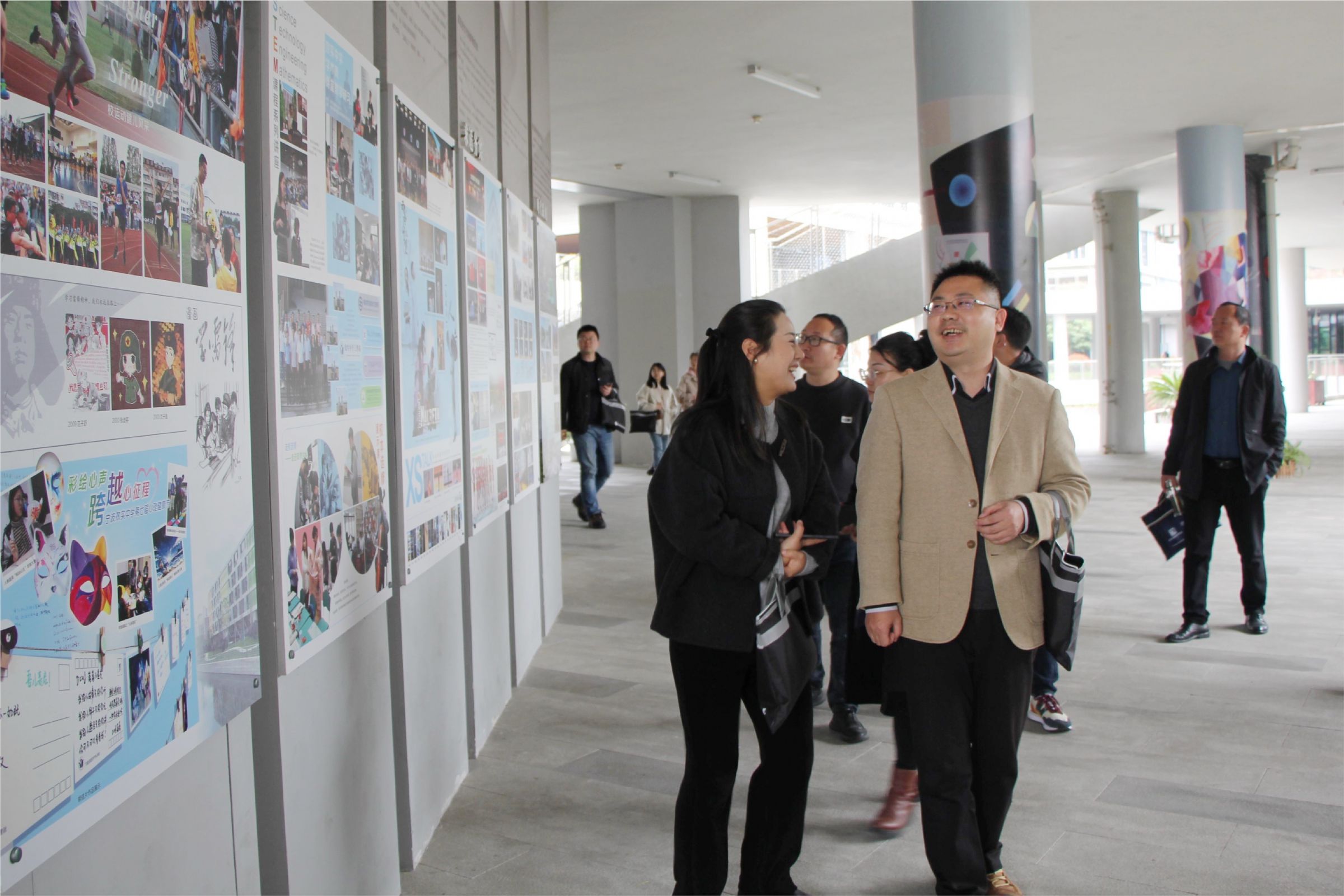 武汉考察团一行在党政办徐玲玲主任的陪同下实地参观了我校杰出校友浮雕墙、海洋生物实验馆、物理学科走廊等地,深入了解了我校的办学特色和办学理念。