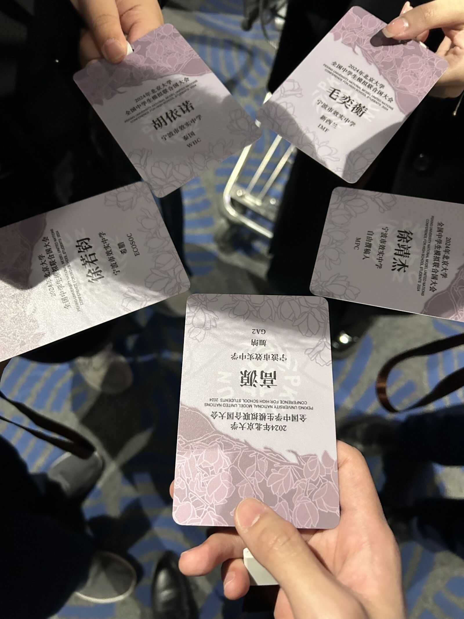 2024年3月14日至17日,2024年北京大学全国中学生模拟联合国大会在燕园成功举办,我校IB2501毛奕蘅、IB2502胡依诺、D2504徐若钧、D2504高源、B2501徐靖杰等五位同学在老师的带领下,出席了本次会议。