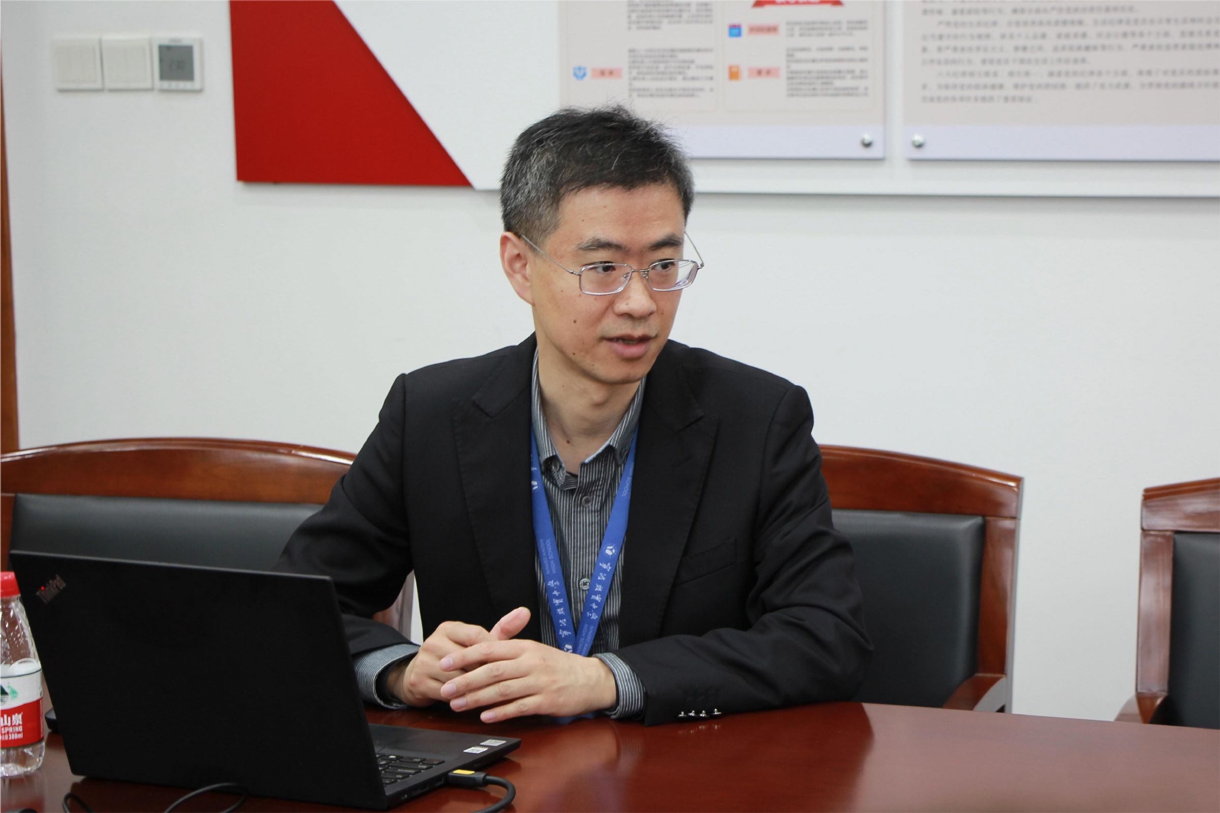 考察团一行先来到行政楼302进行座谈交流。教务处余斌主任对考察团一行的到来表示了热烈欢迎,并向考察团一行作关于拔尖创新人才培养的主题分享,围绕尖子生(拔尖创新人才)培养学校形成的体系和经验及有效做法;竞赛课程教师团队建设、课程设置等长效机制;学校、年级教学管理体系等方面进行了详细介绍。