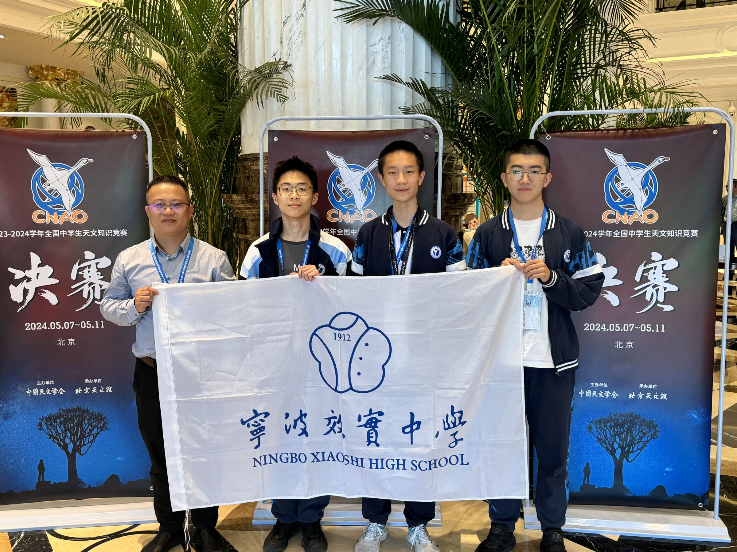 2024年5月7日至11日,2023-2024学年全国中学生天文知识竞赛决赛在北京顺义隆重举行,来自全国各地149名初、高中学生参加了最终的角逐,我校三名学生组成效实中学队征战本次决赛。
