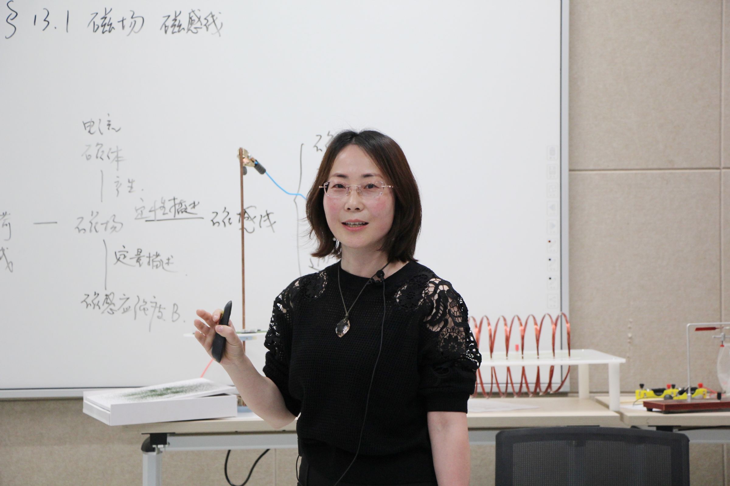 本次活动在物理创新实验室120教室举行,由我校物理组教研组长袁张瑾老师主持。我校物理组钱昭媛老师展示了精彩的一课《磁场 磁感线》,课后华东师范大学第一附属中学特级教师、正高级教师袁芳老师予以点评,袁张瑾老师和上海市虹口高级中学的梅云霞老师分别开展了以《指向核心素养的高中物理实验教学的优化与实践》和《基于单元设计的课堂教学问题链设计》为主题的学术讲座。