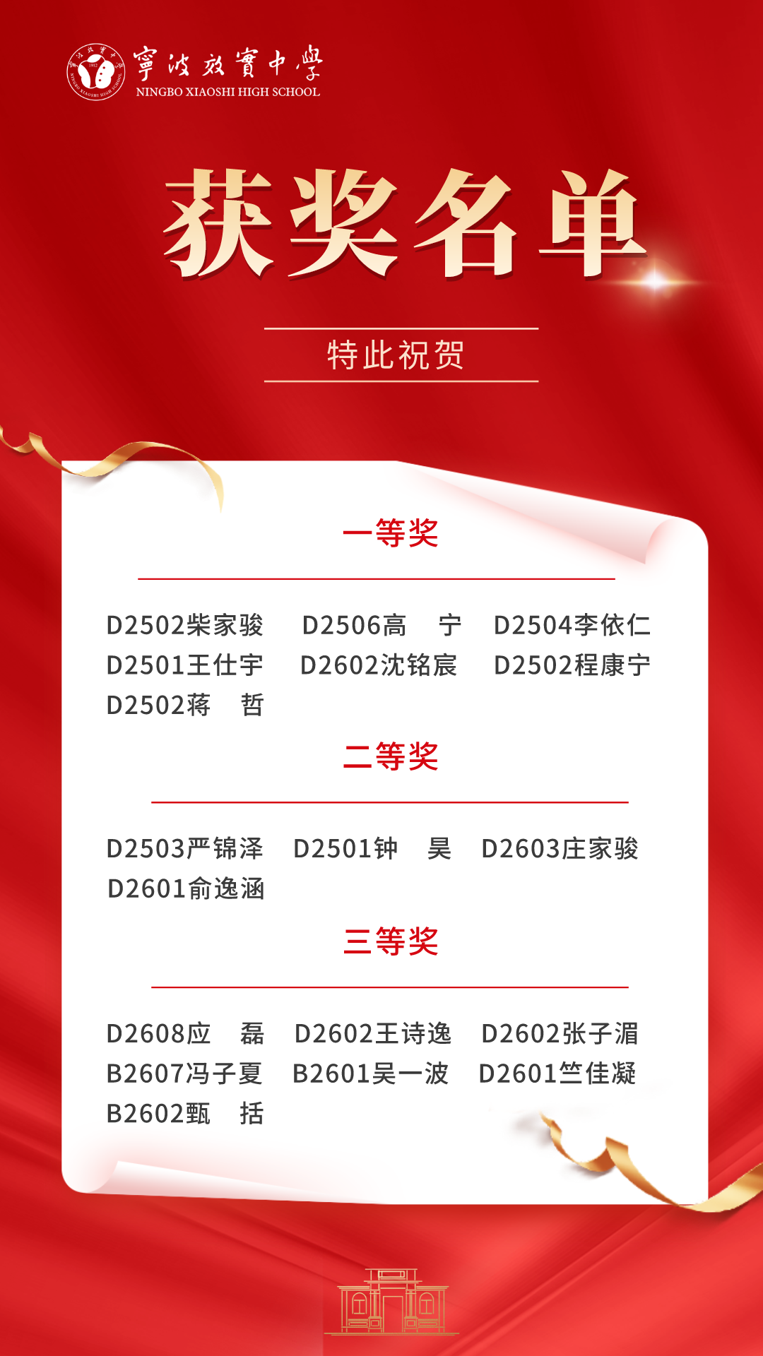 在刚刚公布的2024年全国中学生生物学联赛(浙江赛区)获奖名单中,我校取得突破性佳绩!7人获全国联赛(浙江赛区)一等奖,4人获全国联赛(浙江赛区)二等奖,7人获全国联赛(浙江赛区)三等奖。其中,D2502班柴家骏同学入选省队,并将于8月份赴广州参加全国决赛。