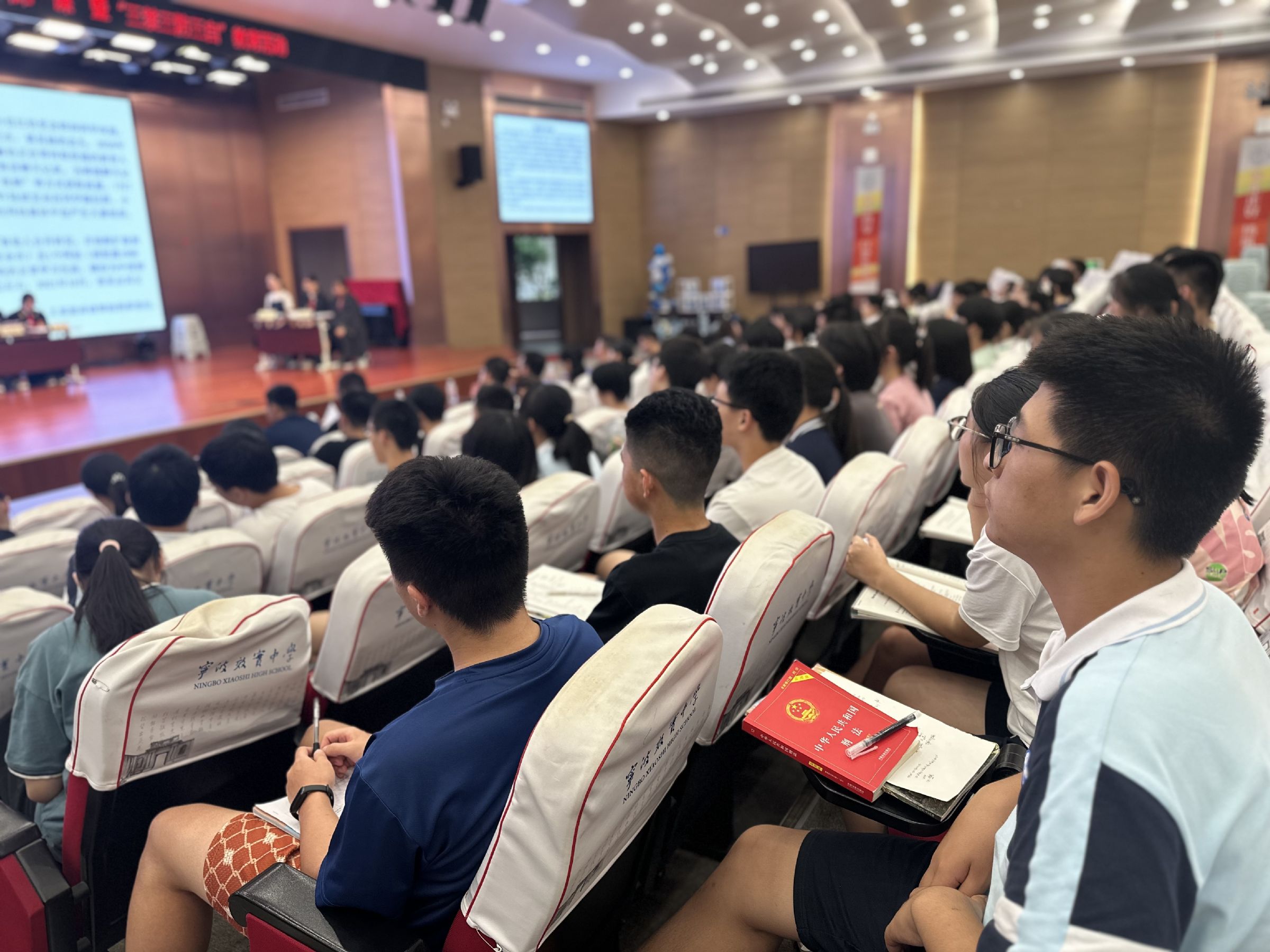 国无法不治,民无法不立,进一步提升广大青少年法治意识和法律素养,9月19日,效实中学联合法律、教育界别的市青联委员们举办“开学法治第一课”活动一场别开生面的模拟法庭活动就此开展,效实中学校长孙立,法律、教育界别的市青联委员们及高一高二同学参加此次活动。