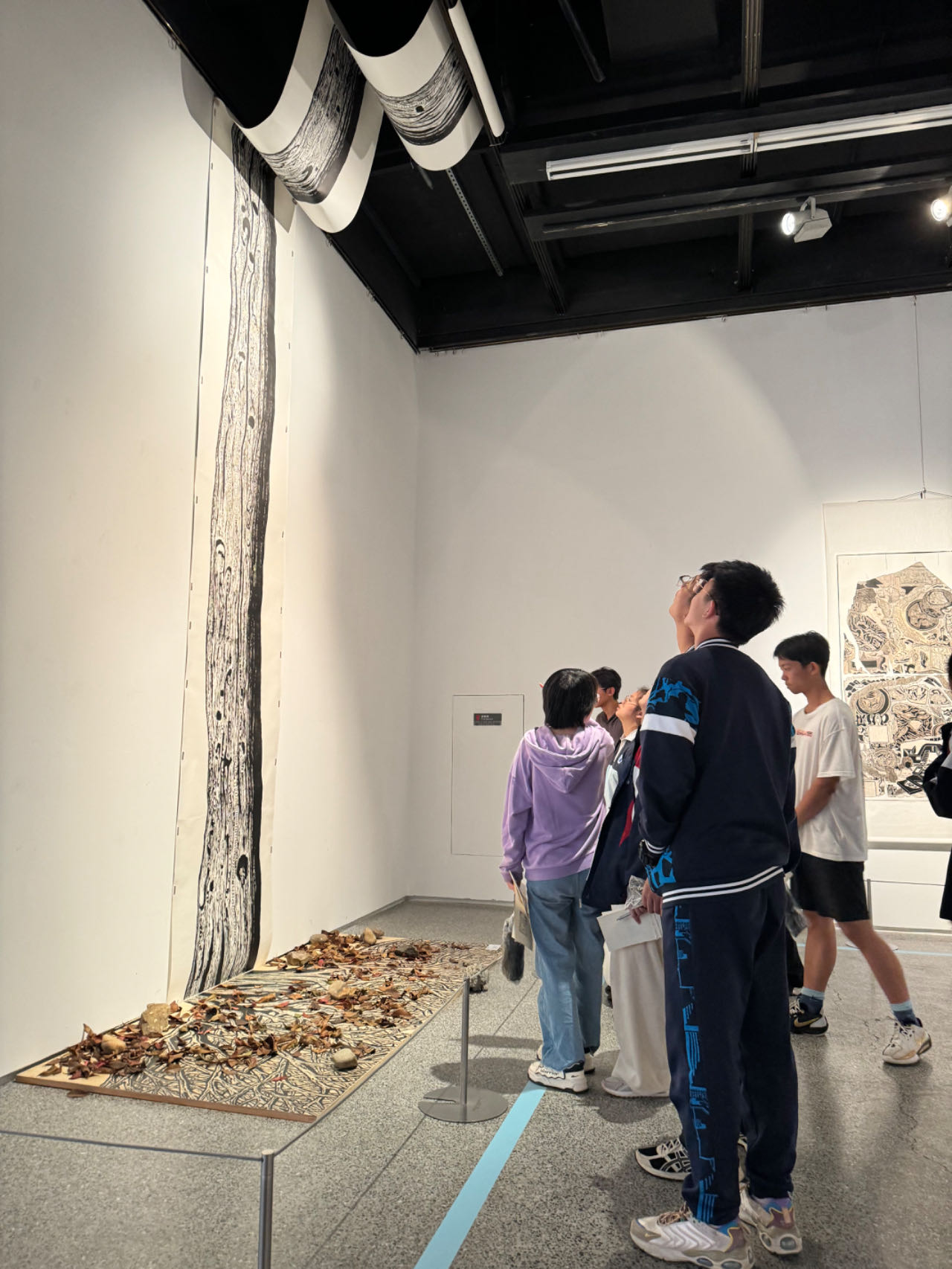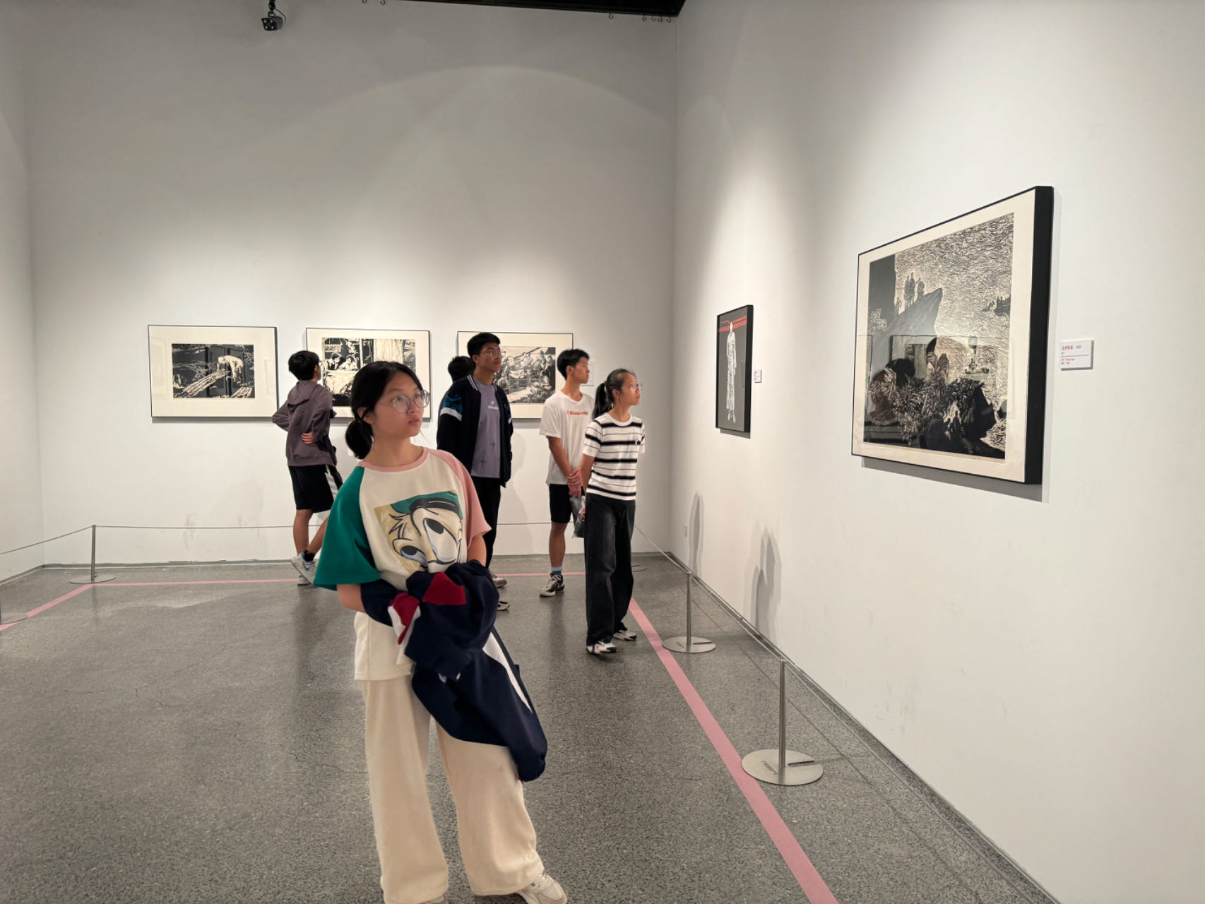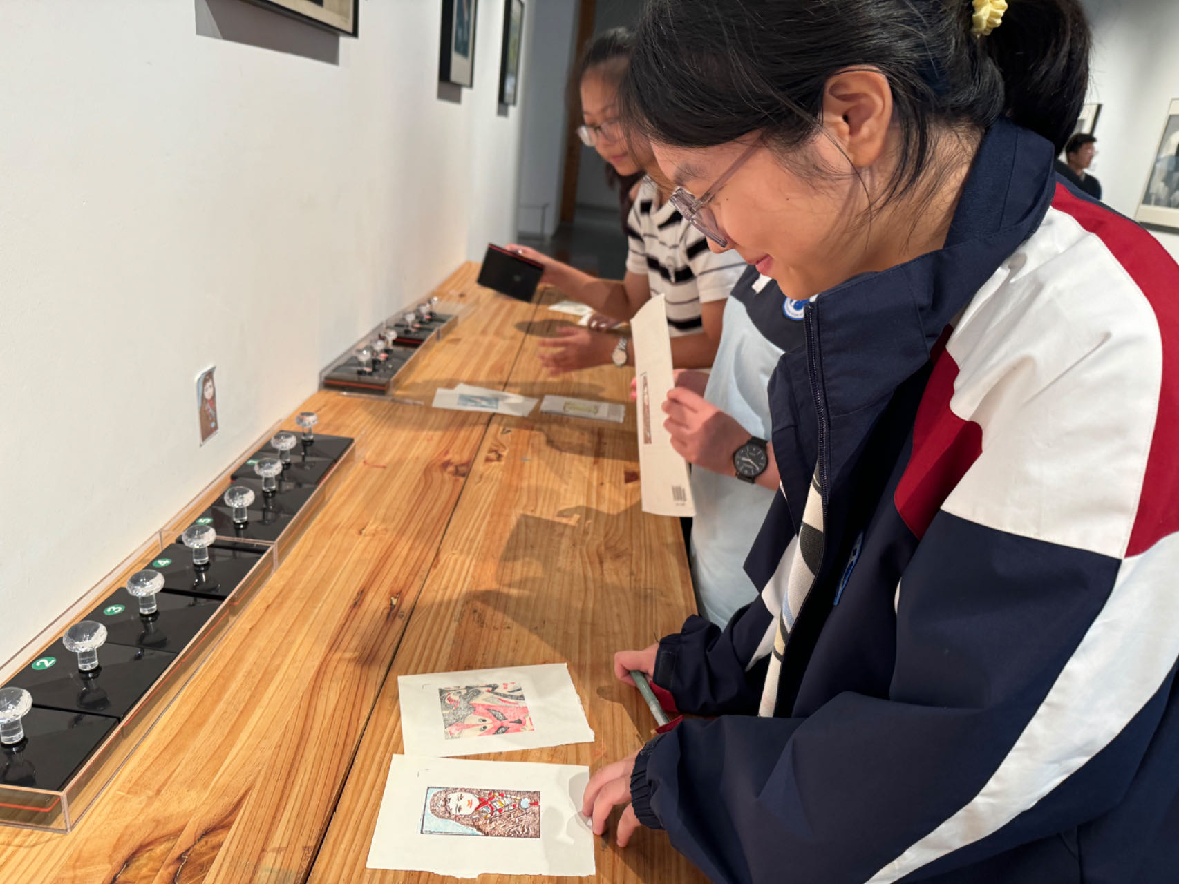 10月17日下午,艺术选修课师生一行参观宁波美术馆“莫忘来时路”——庆祝中华人民共和国成立75周年版画特展。同学们亲身感受了版画这种独特的艺术形式和魅力,了解了近现代及本土版画的发展脉络,并体验了作品中的套色版画形式。特别是观看了德国著名版画家珂勒惠支的原作,深刻感受了绘画的不同艺术形式及感染力,艺术所在社会及个人生命中所承担的角色,以及艺术家们践行艺术实践的担当。此行丰富了同学们的学习生活,开阔了眼界,进一步启发了选修课程中的艺术创作,颇有意义,期待更多的艺术之行。