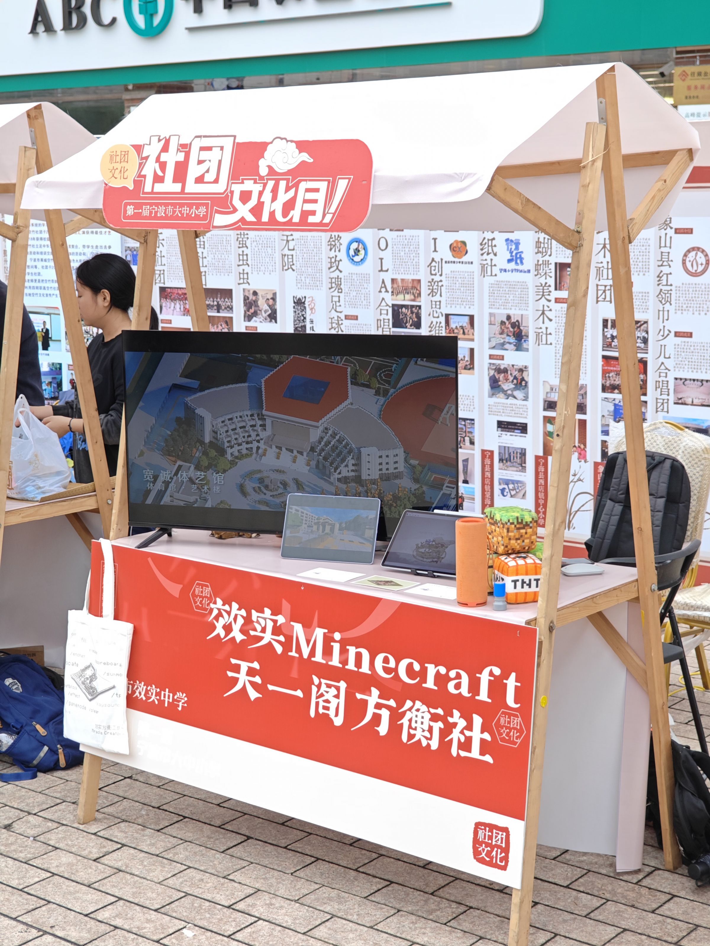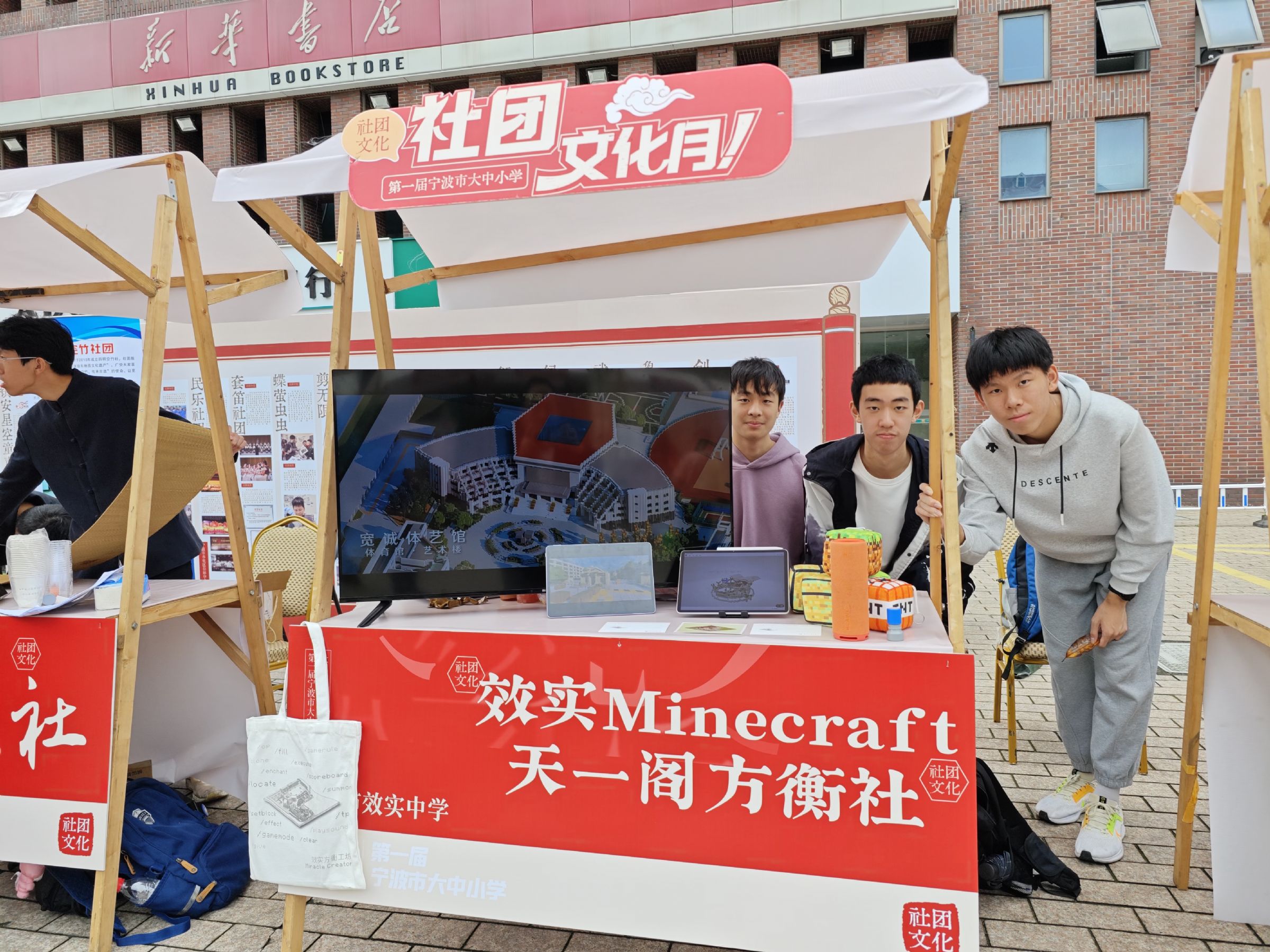 我校白杨校区Minecraft·天一阁方衡社代表学校参加了开幕式的社团展示,并在活动现场为大家提供了视频播放、模型展示等互动环节,并向参展观众赠送了定制明信片,受到了大家的一致好评。作为一个具有划时代意义的新生社团,它不仅吸引了从小学生到市教育局领导的兴趣,也为社团的同学们提供了展现的平台,是对效实中学的社团创新活动最好的诠释。