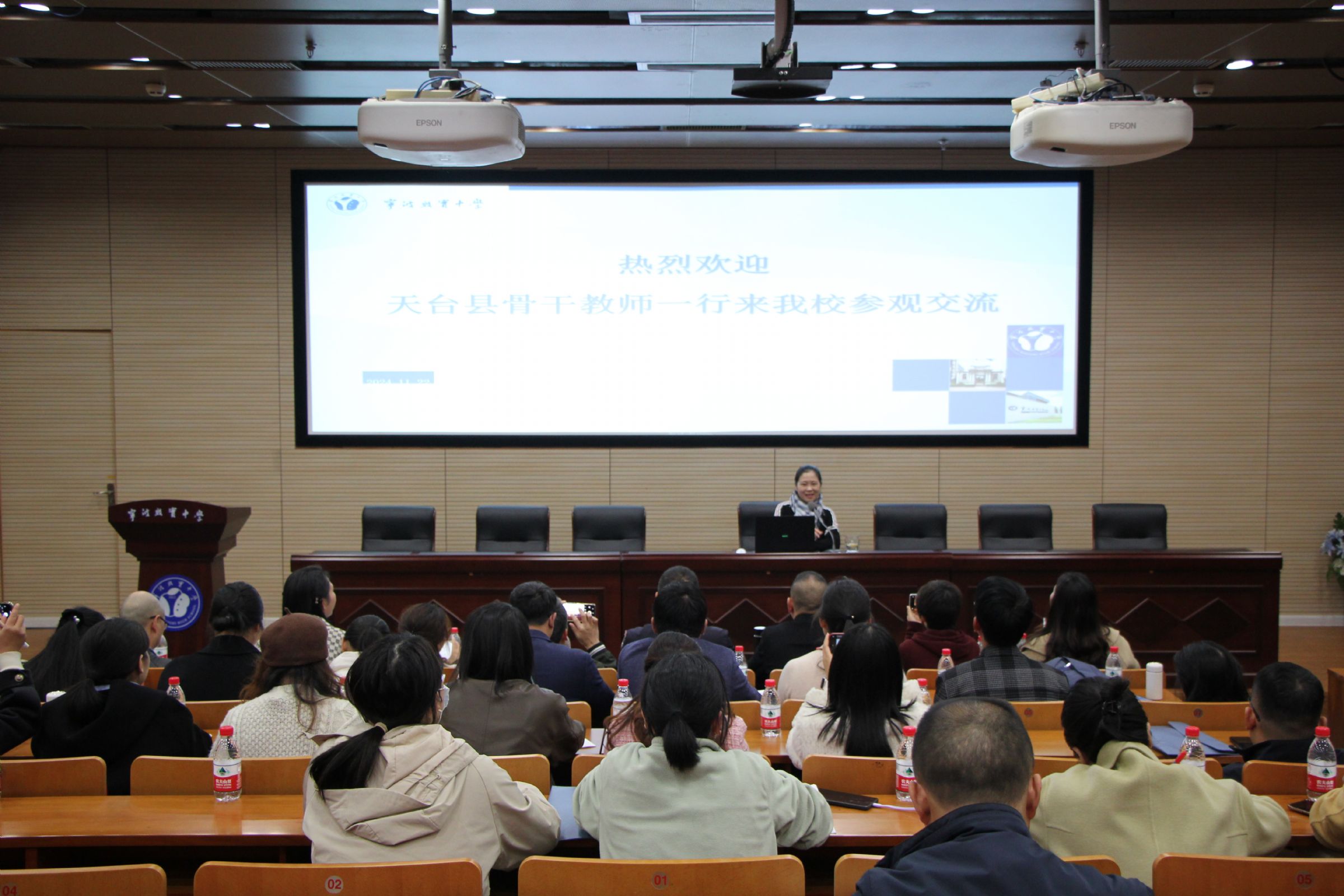 11月22日,天台县骨干教师一行50人来我校东部校区参观交流。张悦书记、党政办徐玲玲主任、教务处余斌主任陪同。