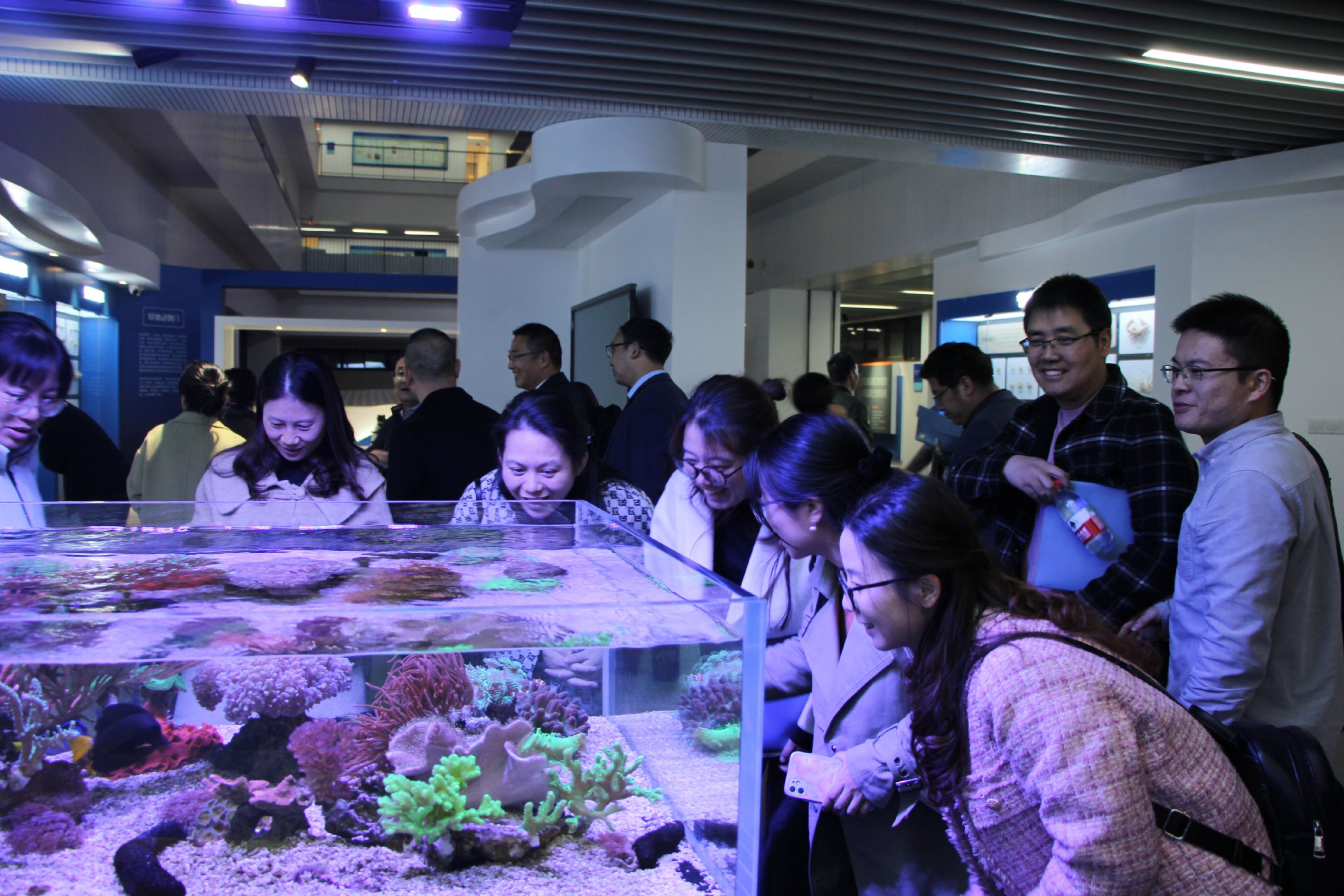 考察团一行在党政办徐玲玲主任的带领下,实地参观了我校溢玖舍、艺术楼、杰出校友浮雕墙、海洋生物展示馆、物理学科走廊等地,深入了解我校的办学理念和办学特色。