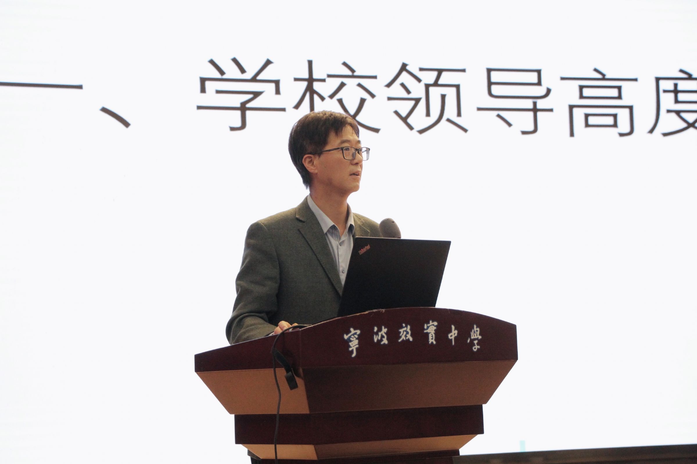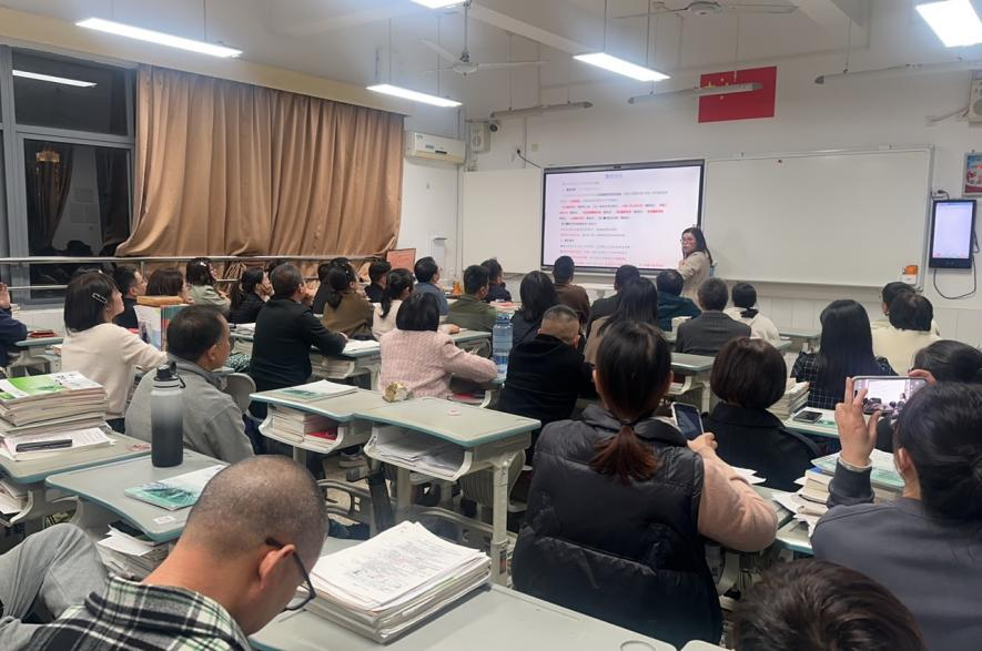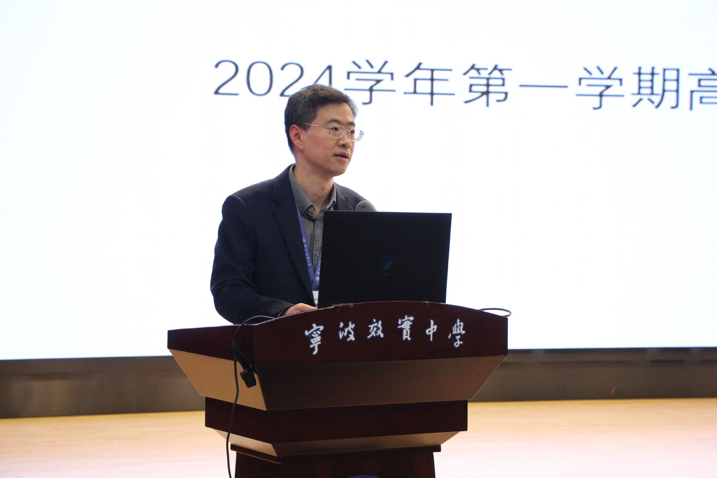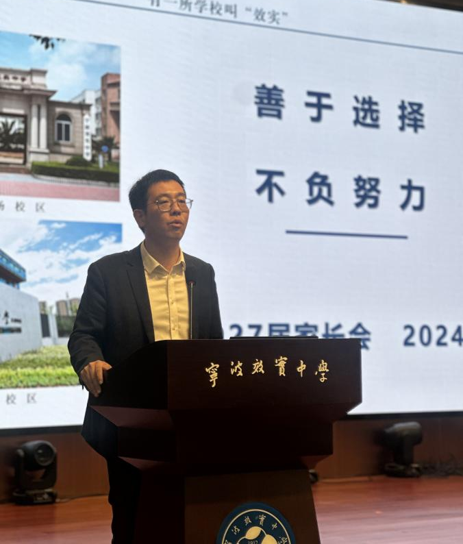 教务处余斌主任向高一年级家长进行了期中考学情分析,并作高中三年学程介绍。