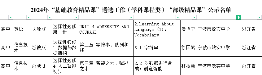 2月24日,教育部基础教育司发布2024年“基础教育精品课”遴选“部级精品课”名单,我校屠艳宁、林秋慧、徐国斌三位教师执教课堂成功入选,被评为学科课程类“部级精品课”。据悉,经层层筛选,浙江省共有131节高中学科课程类精品课入选,我校获奖人数位居全市高中前列。祝贺三位获奖老师!
