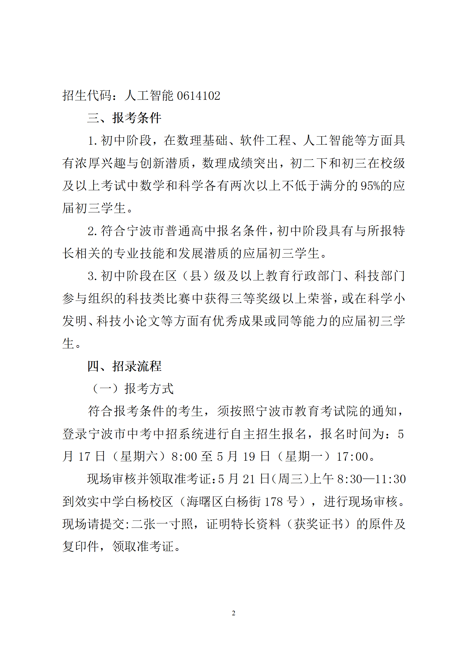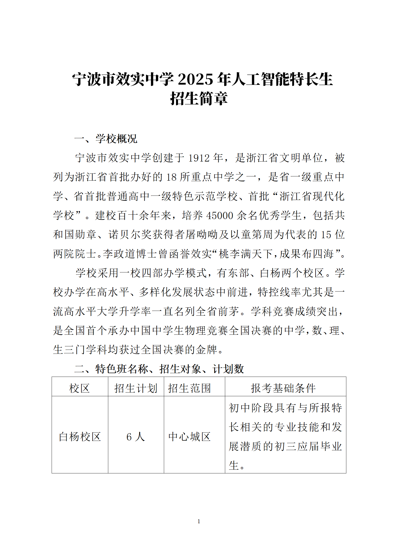 宁波市效实中学2025年人工智能特长生招生简章.pdf