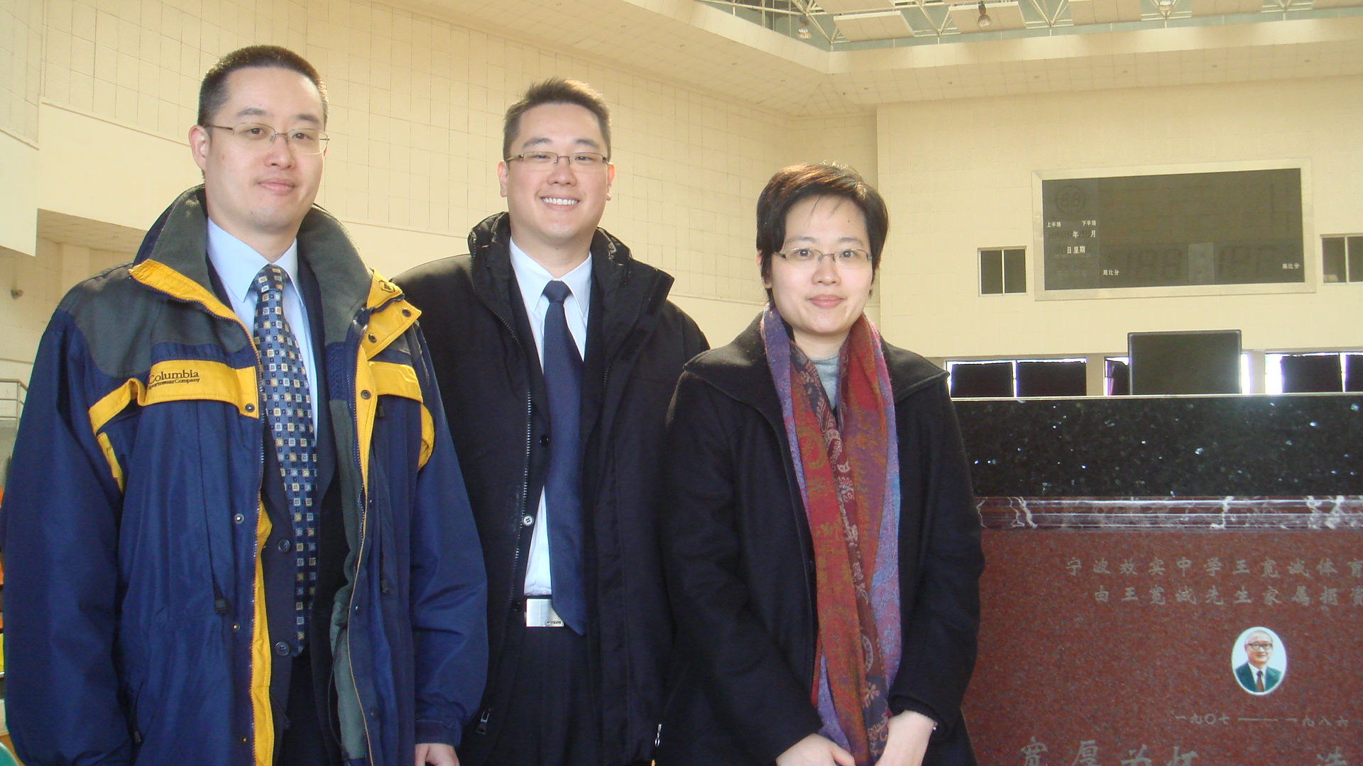 42,王宽诚先生的家属兼王宽诚教育基金会、香港幸福企业集团董事王凯彦、王绛彦、王彭彦等一行5人在甬港联谊会会长张建明和副会长徐文的陪同下来到我校访问。我校校长章才根向客人们介绍了我校2008年各方面所取得的成绩以及各类奖学金的收支和发放情况。章校长还向他们介绍了我校百年校庆的筹备工作以及十年大修的整体思路。客人们对我校所获得的荣誉,尤其是竞赛各科的优异成绩表示祝贺,并对我校奖学金的使用表示满意。客人们随后参观了宽诚体艺馆。在王宽诚先生的像前王凯彦等三兄妹驻足良久并拍照留影。