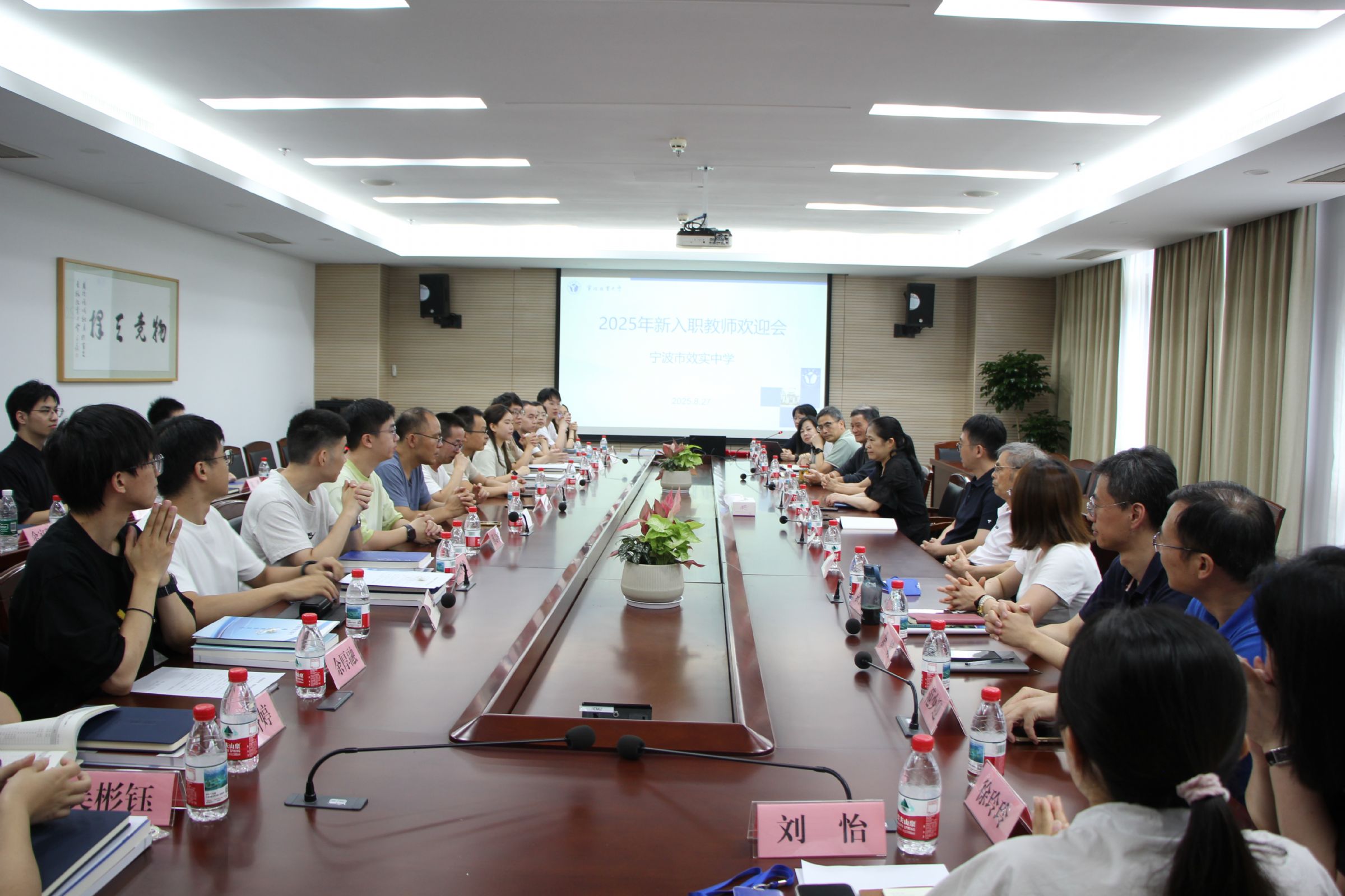 8月27日,宁波市效实中学2025年迎新会暨新入职教师第一次校本培训活动在东部校区举行,学校领导班子成员、部门代表出席本次活动,顾乐波副校长主持会议。本次培训活动特别邀请效实青年教师联盟特聘专家王家祥老师、施丽华老师、姜水根老师、王贤明老师、董明老师莅临指导,为新效实人们传经送宝。