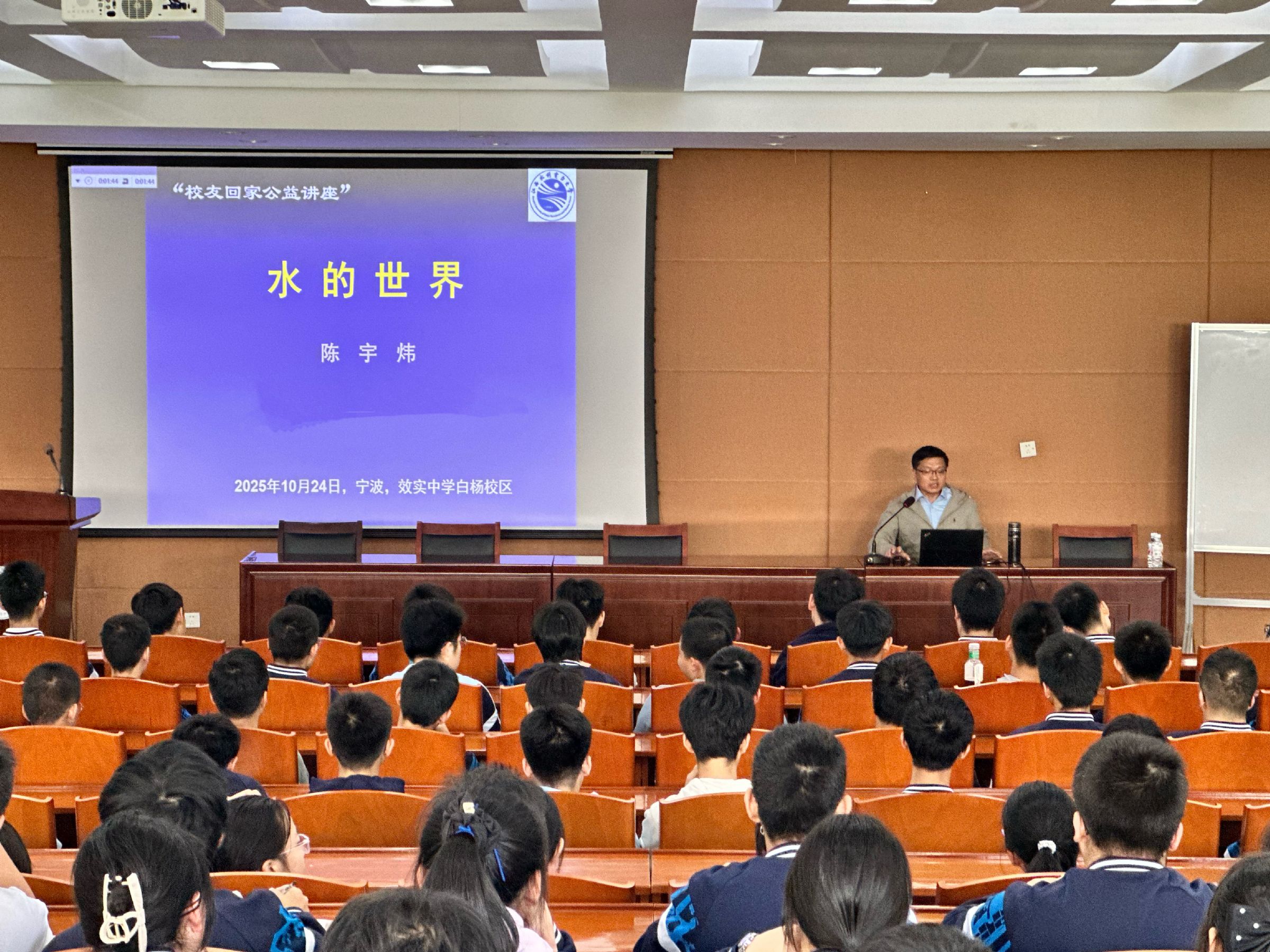 “水不在深,有龙则灵”;谢公宿处今尚在,渌水荡漾清猿啼中华民族因水而起、因水而生。但,你可知近年来我国的水资源正面临一项严重的威胁-水体污染?“1024日,陈宇炜教授的讲座《水的世界》向效实中学的同学们介绍了水生态领域的相关现状与解决方法。