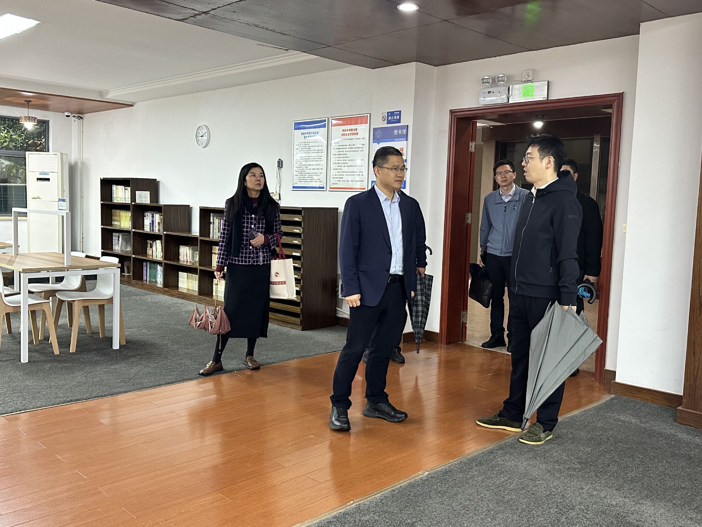 11月12日上午,海曙区副区长田向杰、区府办副主任吕静若、区委教育工委专职副书记区教育局党委副书记陈宏虹和区府办公共事业科科长欧宁来白杨校区走访调研,校长孙立和海航部副主任黎云海陪同调研。