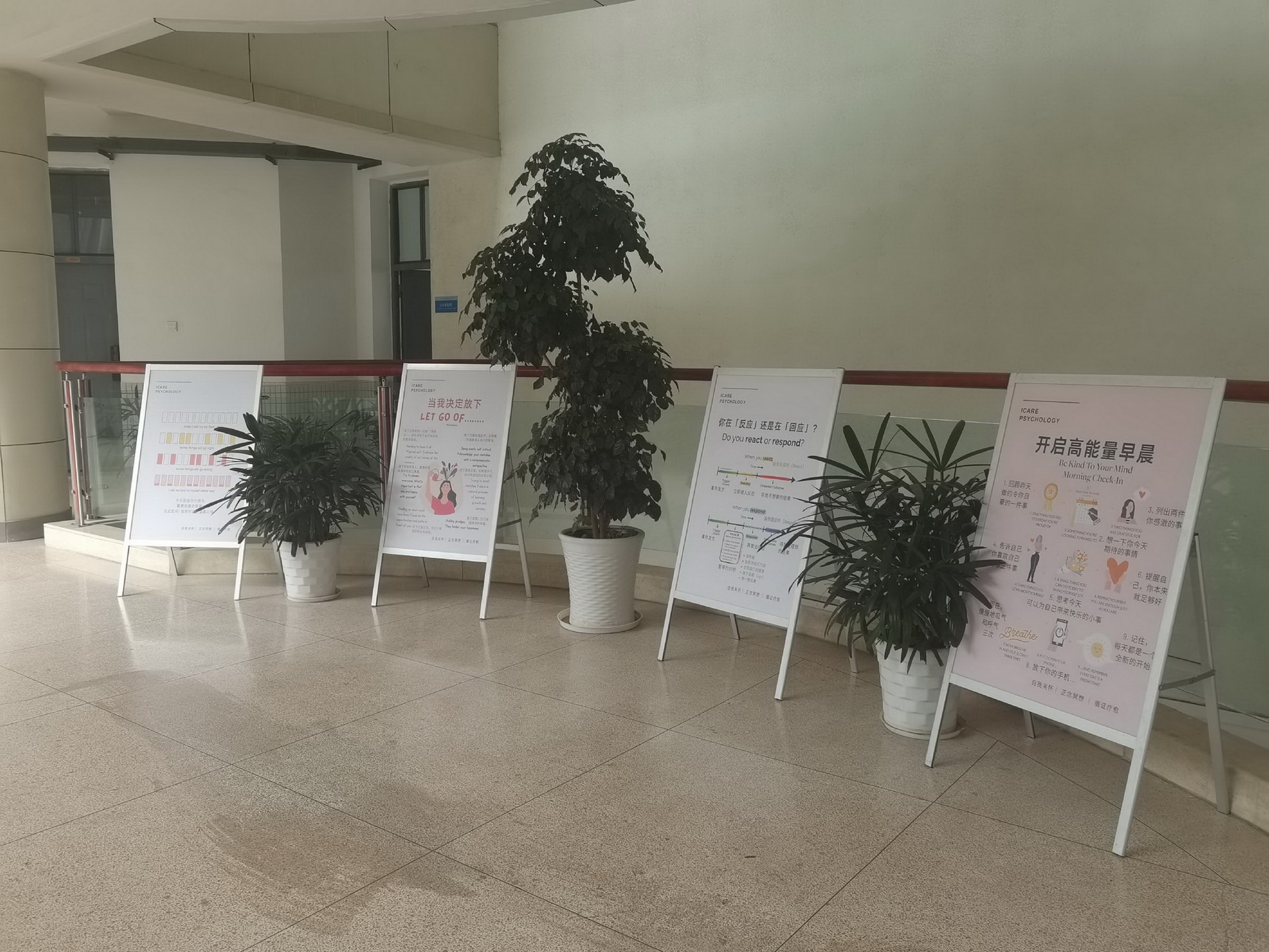 11月心理室在白杨教学楼开展了心理知识主题展览活动。展览设置“情绪管理”“认知调节”“压力应对”三大展区,通过生动有趣的图文展板形式,帮助同学们掌握实用心理技巧。