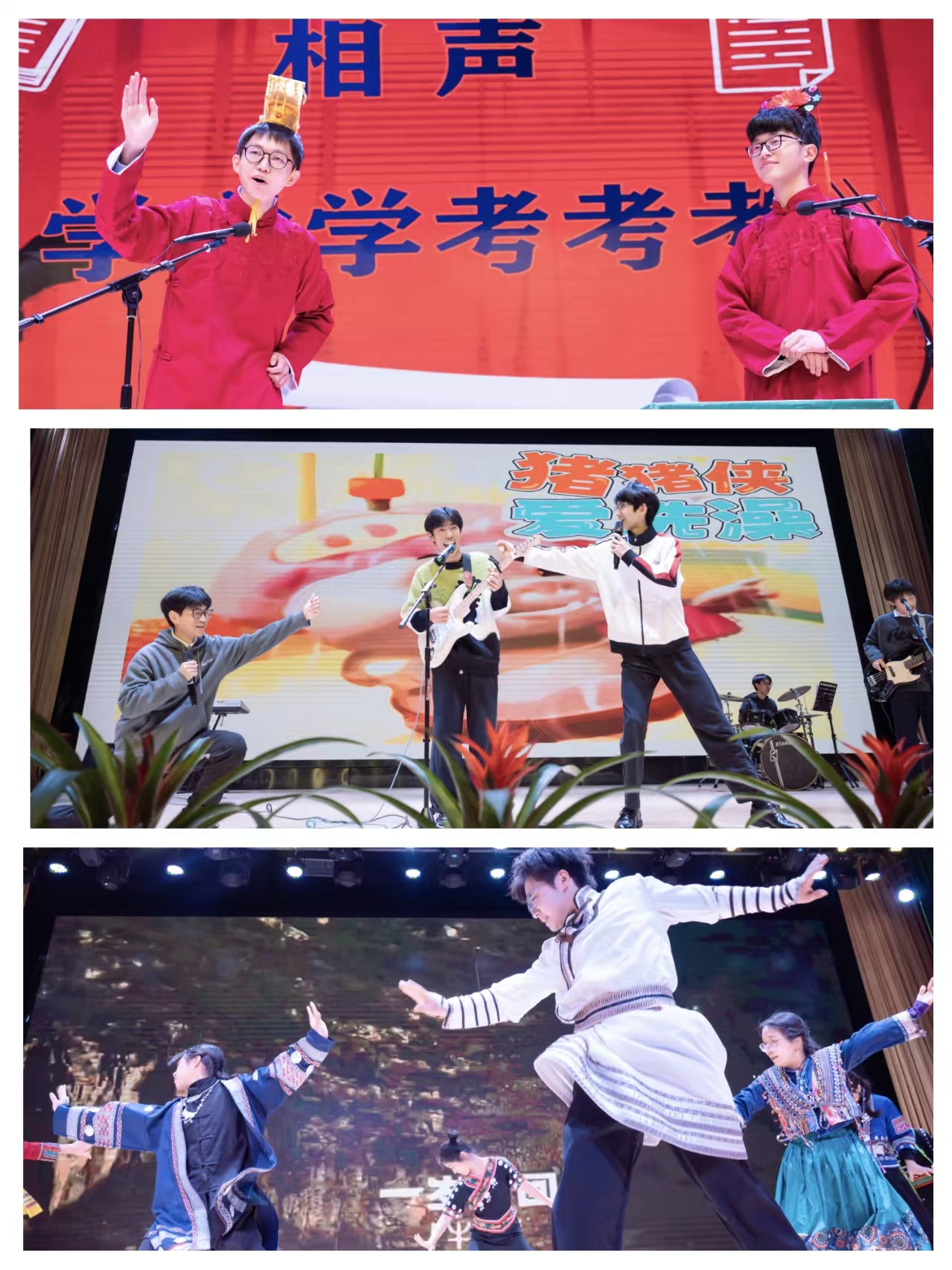 同学们利用课余时间积极投入排练,充分展现了效实学子多才多艺的青春风采。汇演节目类型丰富多元:既有叙事生动、情感细腻的情景歌舞,亦有风格各异、或典雅或奔放的舞蹈;既有传统与现代交融的器乐合奏,也有幽默诙谐的小品相声与节奏鲜明的电声乐队表演。这些节目不仅彰显了学生的艺术才华与创新精神,更兼具娱乐性与互动性,现场气氛持续高涨,掌声与欢呼声此起彼伏,汇成一片欢乐的海洋。