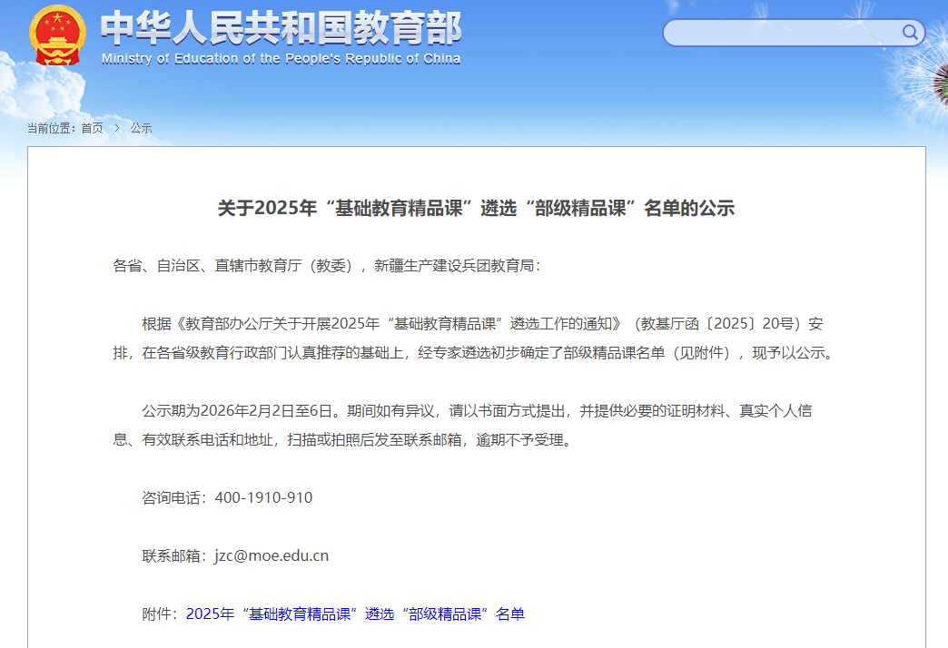 2月2日,教育部基础教育司正式公布了2025年“基础教育精品课”遴选“部级精品课”结果名单,陈思澹老师执教的《5.3 电磁感应》一课成功入选学科课程类“部级精品课”。祝贺两位获奖老师!