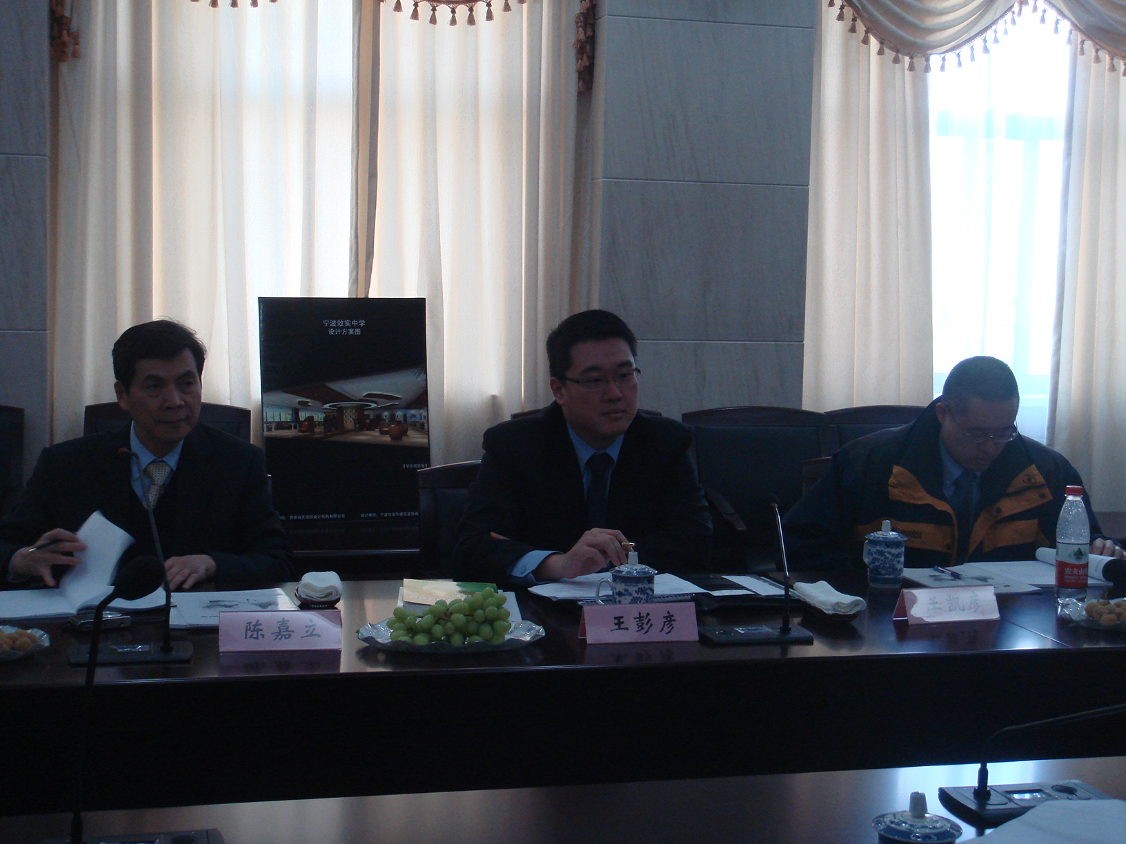 4月7日, 阳光灿烂。王宽诚先生的孙儿王彭彦、王凯彦先生及王宽诚教育基金会高级顾问陈嘉立先生在甬港联谊会会长一行陪同下来到我校访问。章才根校长向他们介绍了我校2009年以来各方面所取得的成绩。我校三位王宽诚奖学金一等奖获得者向客人送上了鲜花。唐天莹同学代表全体王宽诚奖学金获得者在会上做了发言,感谢王宽诚先生爱国重教、报效桑梓的赤子情怀。彭彦和凯彦先生询问了王宽诚教育基金在我校的运作情况,并对我校未来的办学方向表示了浓厚的兴趣。章才根校长对他们的问题一一进行了解答。