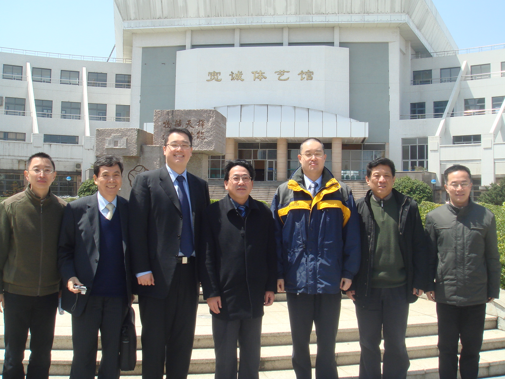 彭彦和凯彦先生每年都会到宽诚体艺馆察看,今年也不例外。看到体艺馆内学生在进行各种活动,学校又对体艺馆进行了改造,新安装了电子显示屏,兄弟俩十分高兴。他们欣然在体艺馆前合影留念。