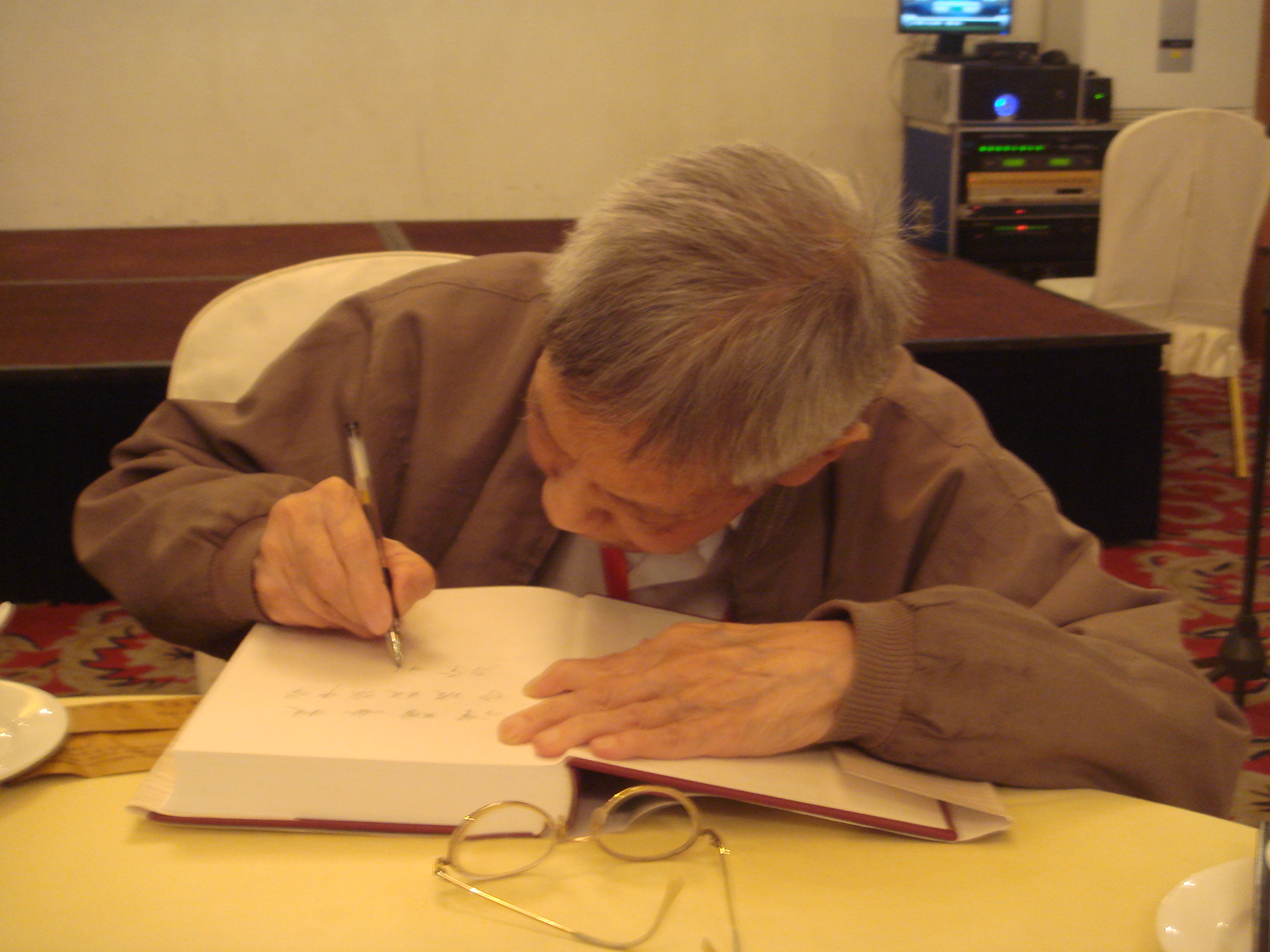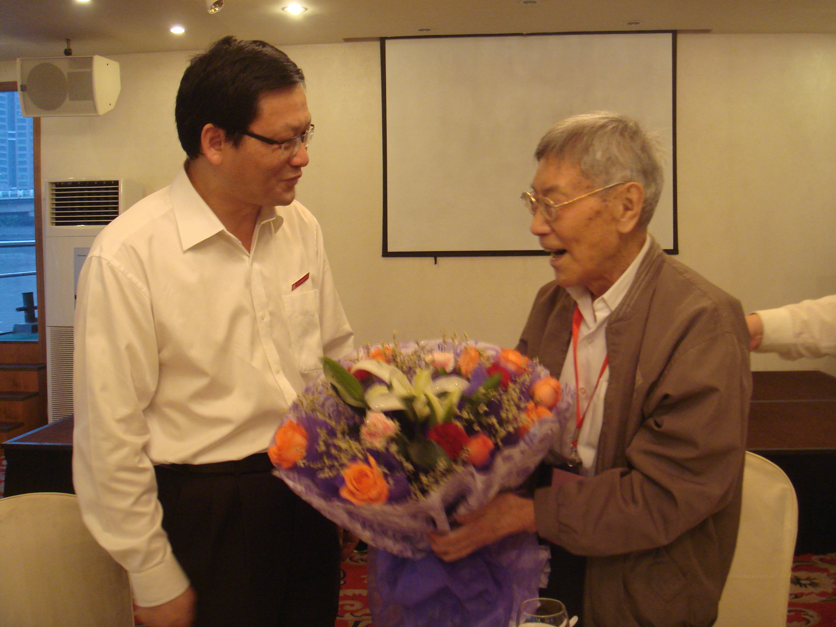5月19日下午,受章才根校长委托, 我校党委副书记奚曾辉、原书记兼校友联络小组组长叶鸿安以及校办主任周敏慧专程去看望了在甬参加学术活动的我校校友、中科院院士徐祖耀。今年适逢徐老九十高寿,奚书记特向他送上了鲜花表示祝贺。徐老十分高兴,欣然提笔在自己的著作《徐祖耀文选》上题字,并将两套文选赠送给母校惠存。 奚书记转达了章校长对徐老的问候并欢迎他在方便的时候回母校参观指导。