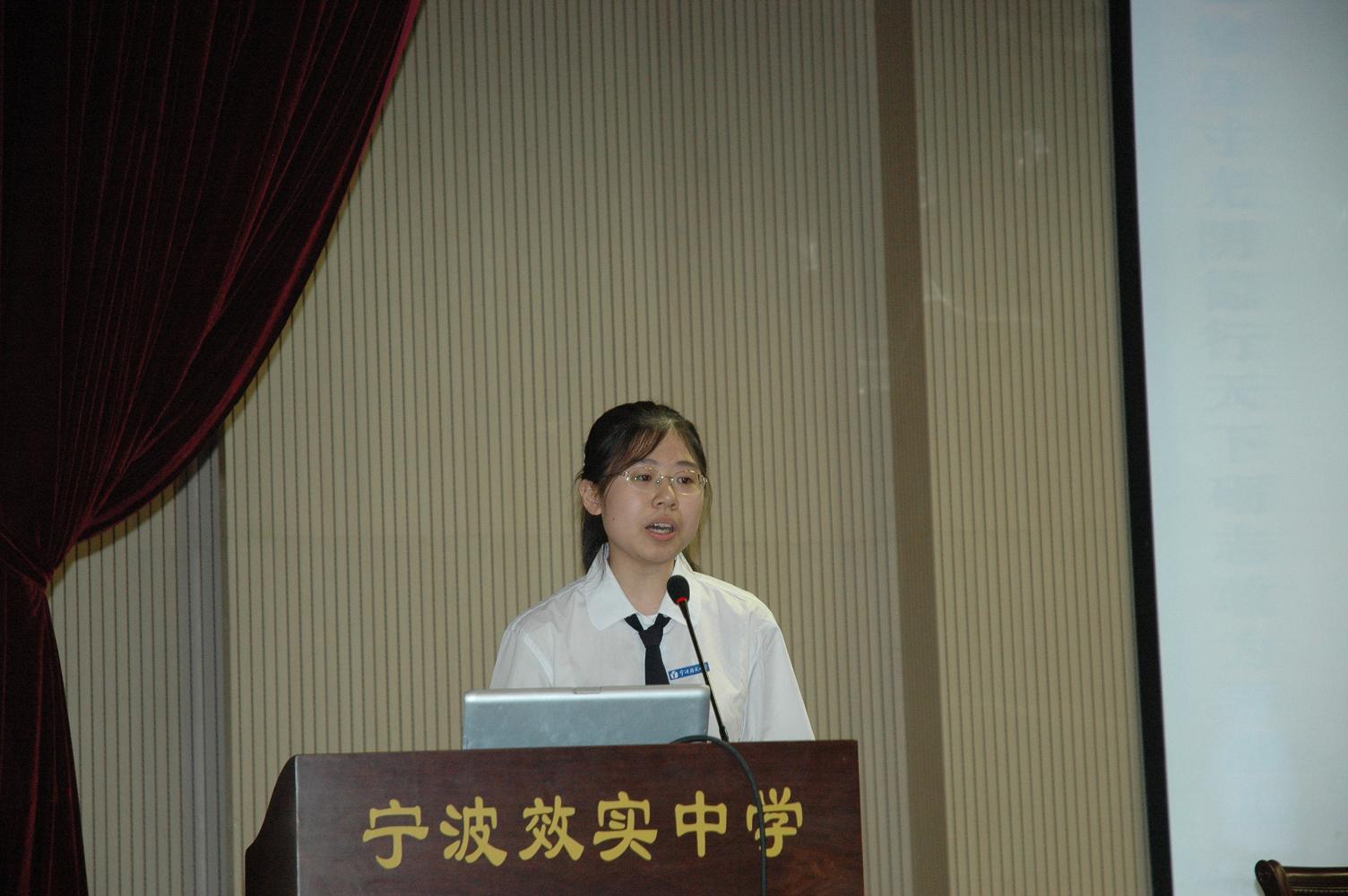 三年的征途,是光荣的荆棘路,带着梦想与期待,这一届高三学生一路走来。高三(10)班唐天莹同学代表所有毕业生发言,她回想起在五洲亭旁苦读,银杏树下吟思的日子,高一刚入校时的时光,五月歌会、运动会、艺术节、春游,各种各样的实践舞台,历历在目,效实,留下了太多的美好记忆。但聚会照亮的不仅是过去,还有未来,唐天莹同学也用“言忠信,行笃敬,效实储能齐努力,破壁出飞龙”鼓励在座的所有同学,用效实三年的积淀,以海纳百川的气势,在效实这个梦想起飞的地方再次展翅飞翔。