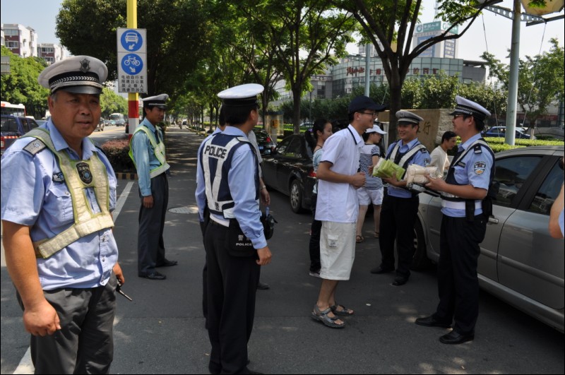 “8·1”建军节期间,社会各界以自己不同的形式冒着炎炎酷暑,积极问候军队官兵、武警、公安干警等这些最可爱的人。8月2日早上,在我校党委副书记奚曾辉老师的带领下,我校总务处、政教处等部门人员及学生会的学生代表带着一点心意,看望问候了南门派出所和宁波交警支队海曙大队的同志们,希望能给高温下仍坚守岗位的公安派出所和交警支队的干警们带来一丝凉意,对他们的付出和艰辛的工作,表达自己的敬意。